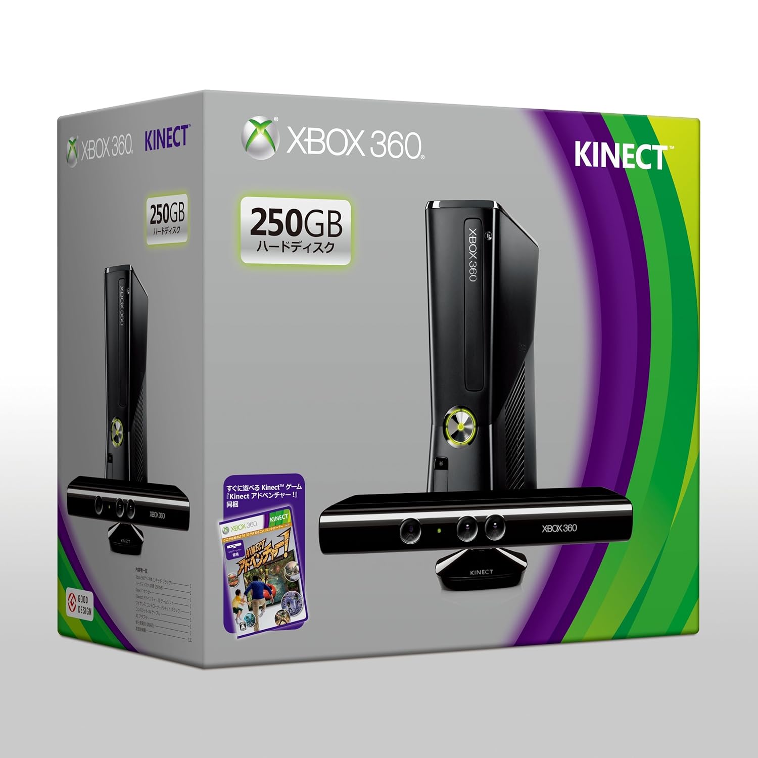 The Xbox 360 250GB console, bundled with Kinect, offers a comprehensive gaming experience. Includes power cords and one controller.