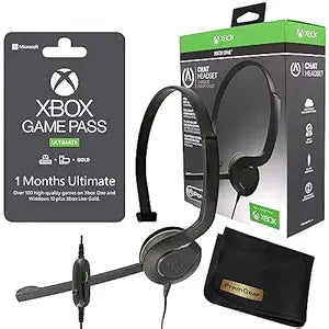 Unleash the full potential of your Xbox with the Xbox Game Pass Ultimate 1 Month Membership bundle. Gain access to over 100 high-quality games, Xbox Live Gold, and EA Play, along with a PowerA Chat Gaming Headset for crystal-clear communication. **Specifications:** * Includes: Xbox Game Pass Ultimate 1 Month Membership (digital code) * Benefits: Xbox Live Gold, over 100 high-quality games, EA Play membership * Platform: Console, PC, phones, and tablets * Headset: PowerA Chat Gaming Headset for Xbox * Also included: PremGear Cleaning ClothWe partner with Amazon and other retailers to provide accurate product information and convenient access to purchase options. As an Amazon Associate we earn from qualifying purchases.