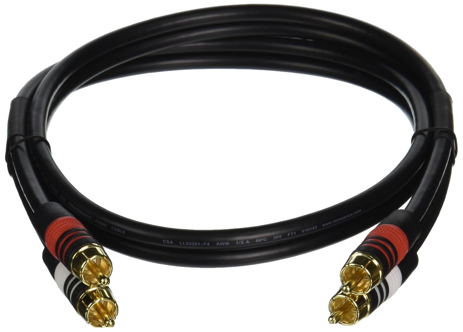 * **Component Video/Audio Cable:** * **Length:** 6ft * **Conductor:** 22AWG RG-59 Coaxial * **Connectors:** 5-RCA (Component Video - Red, Green, Blue; Audio - Red, White) * **Shielding:** Prevents EMI and RFI interference * **Two-Channel Audio Cable:** * **Length:** 3ft * **Conductor:** 22AWG RG-59 75 ohm Coaxial * **Connectors:** 2 RCA Plug to 2 RCA Plug (Male to Male) * **Shielding:** Prevents EMI and RFI interference * **Connectors:** Gold PlatedWe partner with Amazon and other retailers to provide accurate product information and convenient access to purchase options. As an Amazon Associate we earn from qualifying purchases.