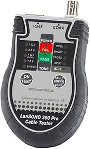 The Monoprice SOHO Cable Tester is an indispensable tool for verifying the integrity of your RJ-45 and BNC cable connections. Designed to provide accurate test results for various wiring standards, this compact tester is perfect for both home users and IT professionals. Ensure your network cables are properly wired and functioning as expected with this easy-to-use device. **Specifications:** * **Compatibility:** RJ45 (EIA/TIA-568A, EIA/TIA-568B, 10BASE-T, Token Ring), BNC * **Includes:** 6 BNC Jumper Cable, 50-ohm BNC terminatorWe partner with Amazon and other retailers to provide accurate product information and convenient access to purchase options. As an Amazon Associate we earn from qualifying purchases.