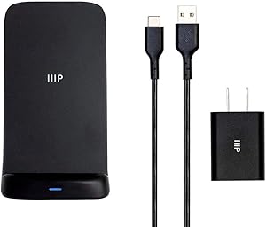Experience the convenience of wireless charging with the Monoprice 15W Fast Wireless Charging Stand Bundle. This Qi-certified stand delivers rapid charging for compatible iOS and Android phones, eliminating the need for cables.