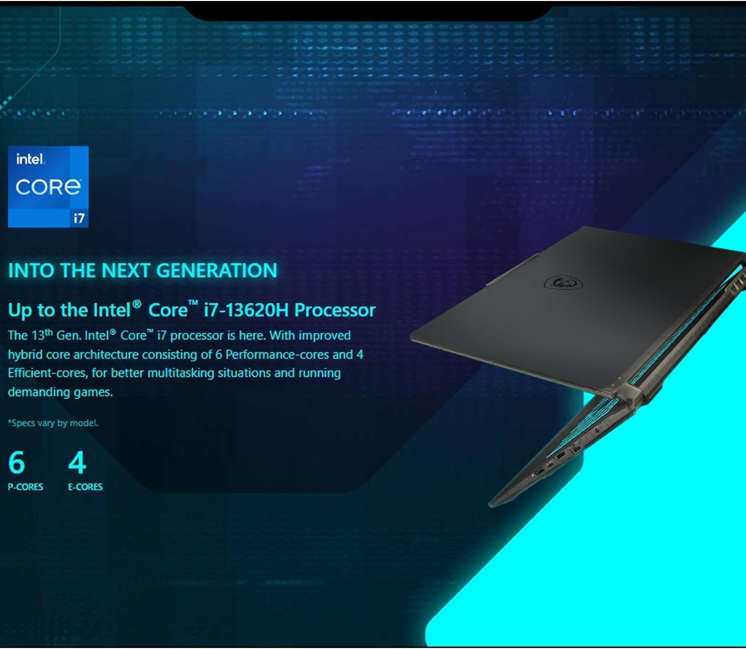 - Processor: 13th Gen Intel Core i7-13620H (4.90 GHz, 10 Cores)
