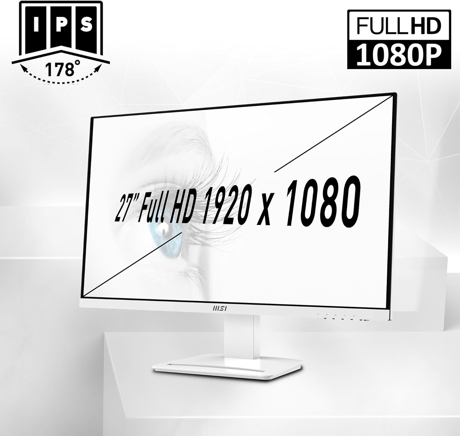 Introducing the MSI Pro MP273AW, a 27" monitor designed for enhanced productivity and eye comfort. With its Full HD resolution, IPS panel, and TUV-certified eye protection, this monitor delivers exceptional visuals and a comfortable viewing experience for extended use.