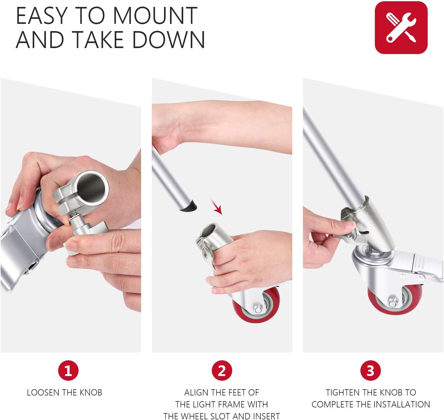The Neewer 3 Packs Professional Swivel Caster Wheels Set provides a convenient and robust solution for adding mobility to your photography C stands. Designed for easy installation and smooth movement, these durable wheels ensure stable and secure positioning for your studio equipment.