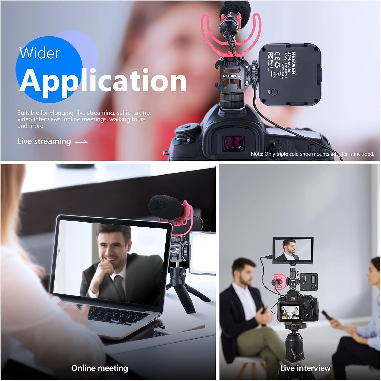 - Three Cold Shoes: For mounting microphones, LED lights, and monitors