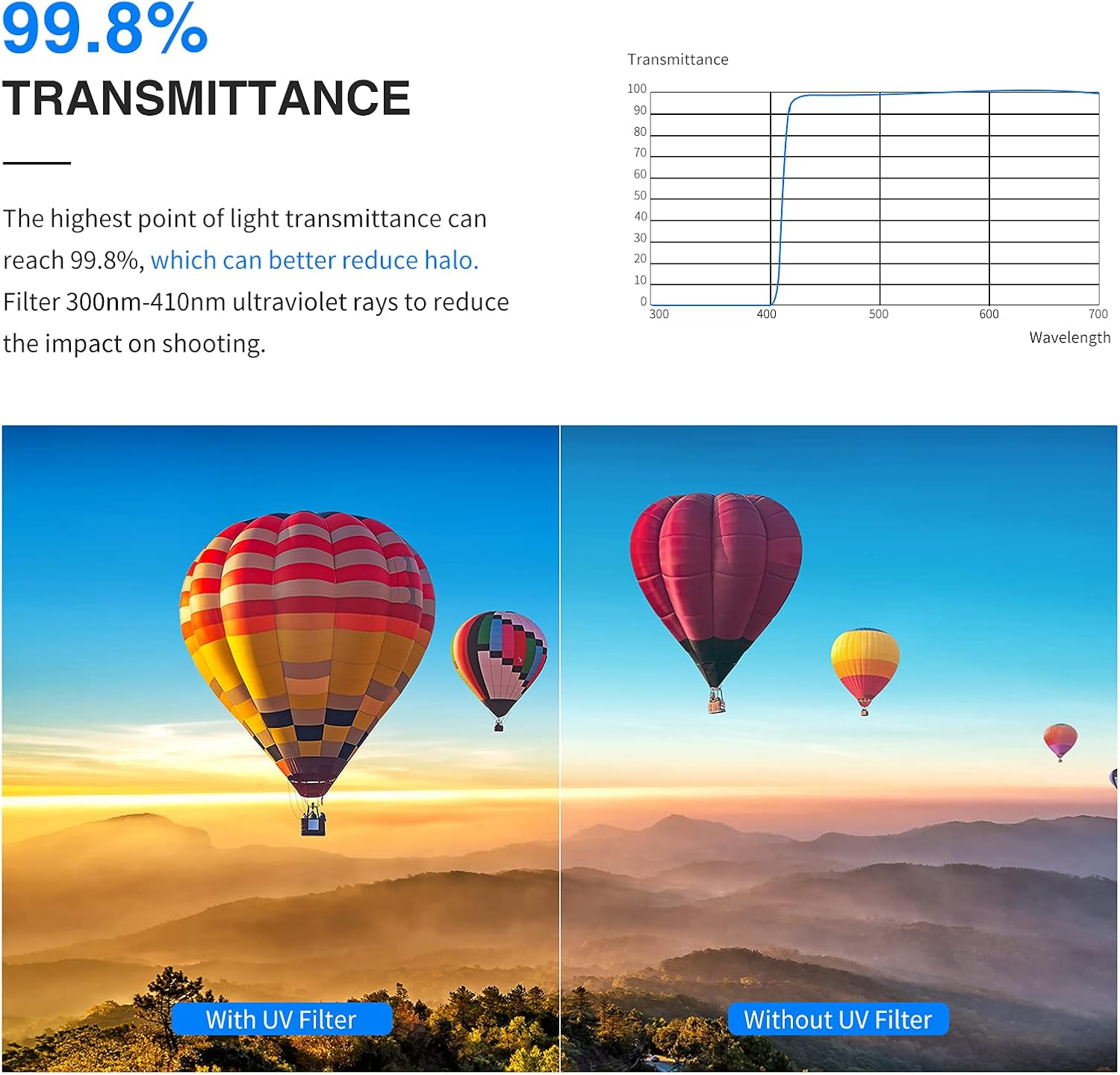 The NEEWER 37mm UV Filter offers exceptional lens protection and enhanced image quality. Featuring 30 layers of nano-coating, this ultra-thin filter reduces ultraviolet light, eliminates bluish casts, and shields your lens from dust, scratches, and other potential damage.