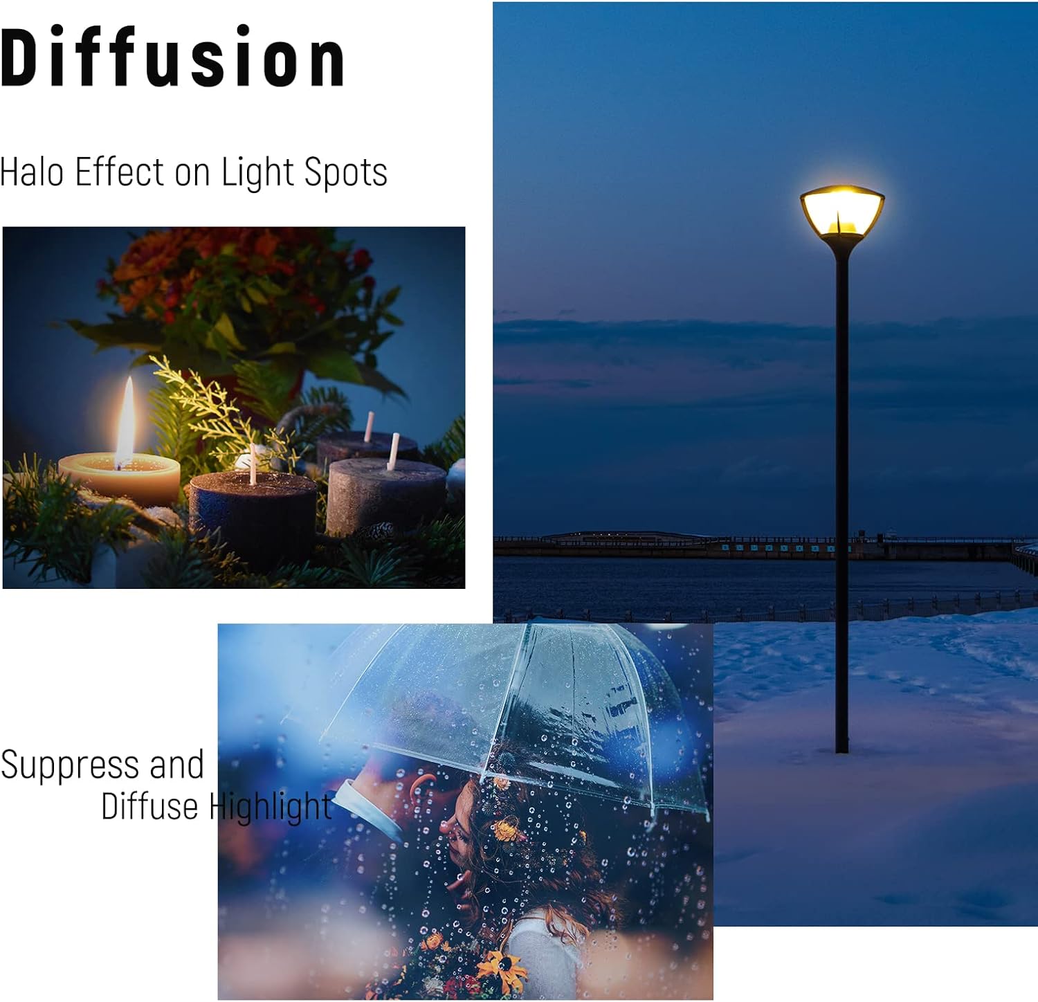 Introducing the NEEWER 55mm Black Diffusion 1/8 Filter, designed to create a soft, ethereal look in your photos and videos. Ideal for portrait photography, video recording, and vlogs, this filter helps reduce highlights and glare, giving skin a smoother, hazier appearance and adding a dreamy film effect.