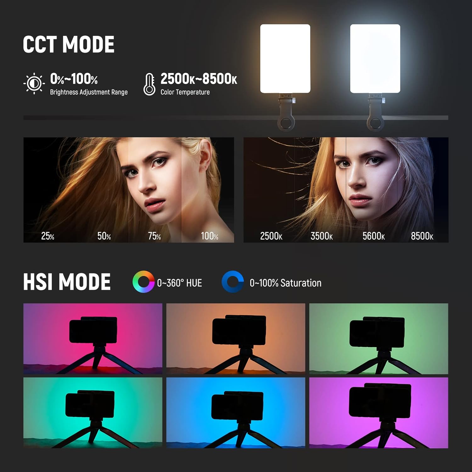- Color Temperature: 2500K-8500K