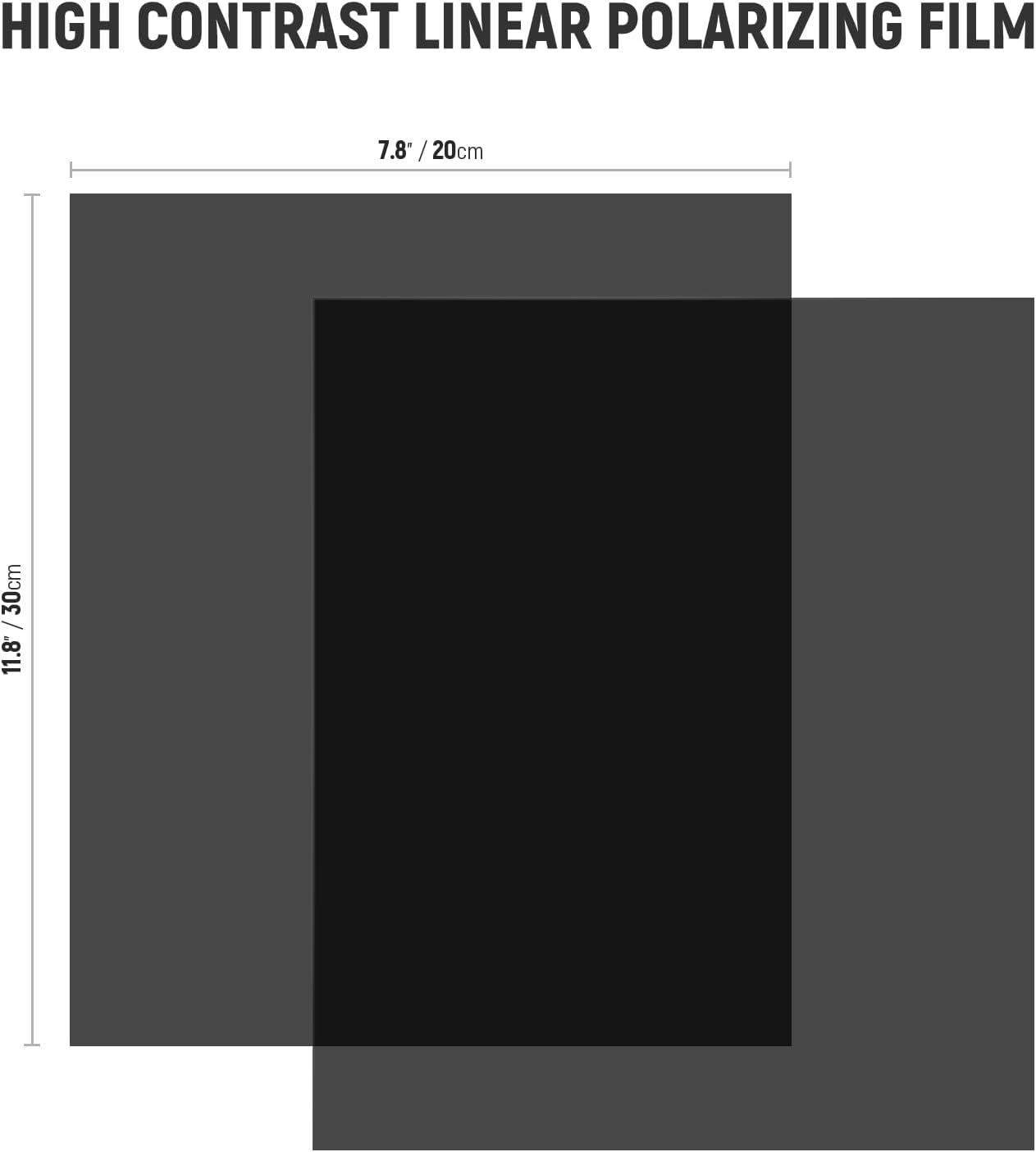 The NEEWER 2PCS Linear Polarizing Film provides an excellent solution for LCD monitor screen repair, optical analysis, and physics education. With a 0° polarization line and high transmission, these cuttable A4 sheets (8.3" x 11.7") are perfect for various applications. Use them for polarized filters, reducing glare, and improving image quality in your projects. The PET material ensures durability and reliability.