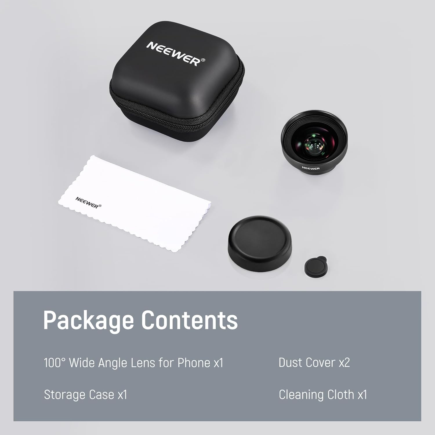 Introducing the NEEWER 18mm HD 100° Wide Angle Lens, designed to dramatically enhance the field of view for your smartphone photography. Perfect for capturing expansive landscapes and dynamic cityscapes, this lens is a must-have for mobile photographers seeking professional-quality results.