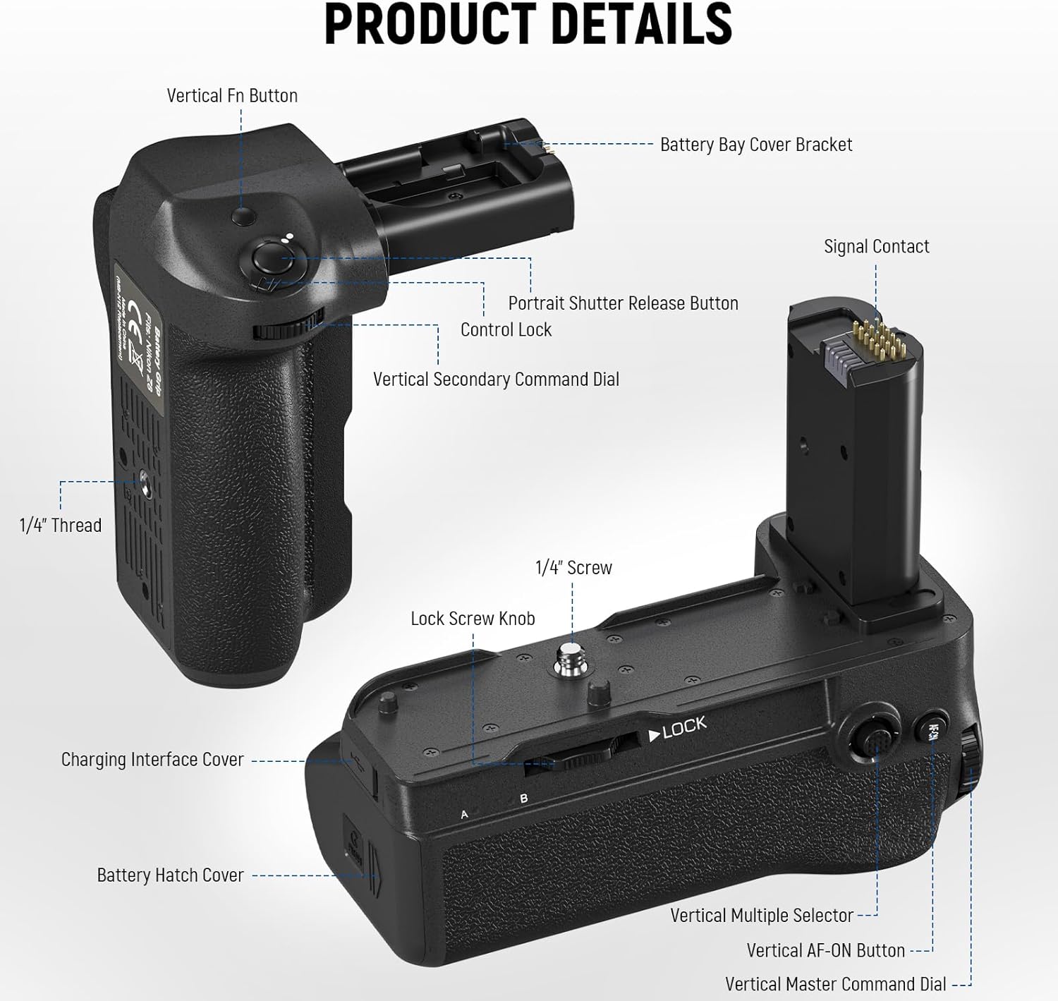 - Nikon Z8 Compatibility: Designed as a replacement for the Nikon MB-N12 battery grip.