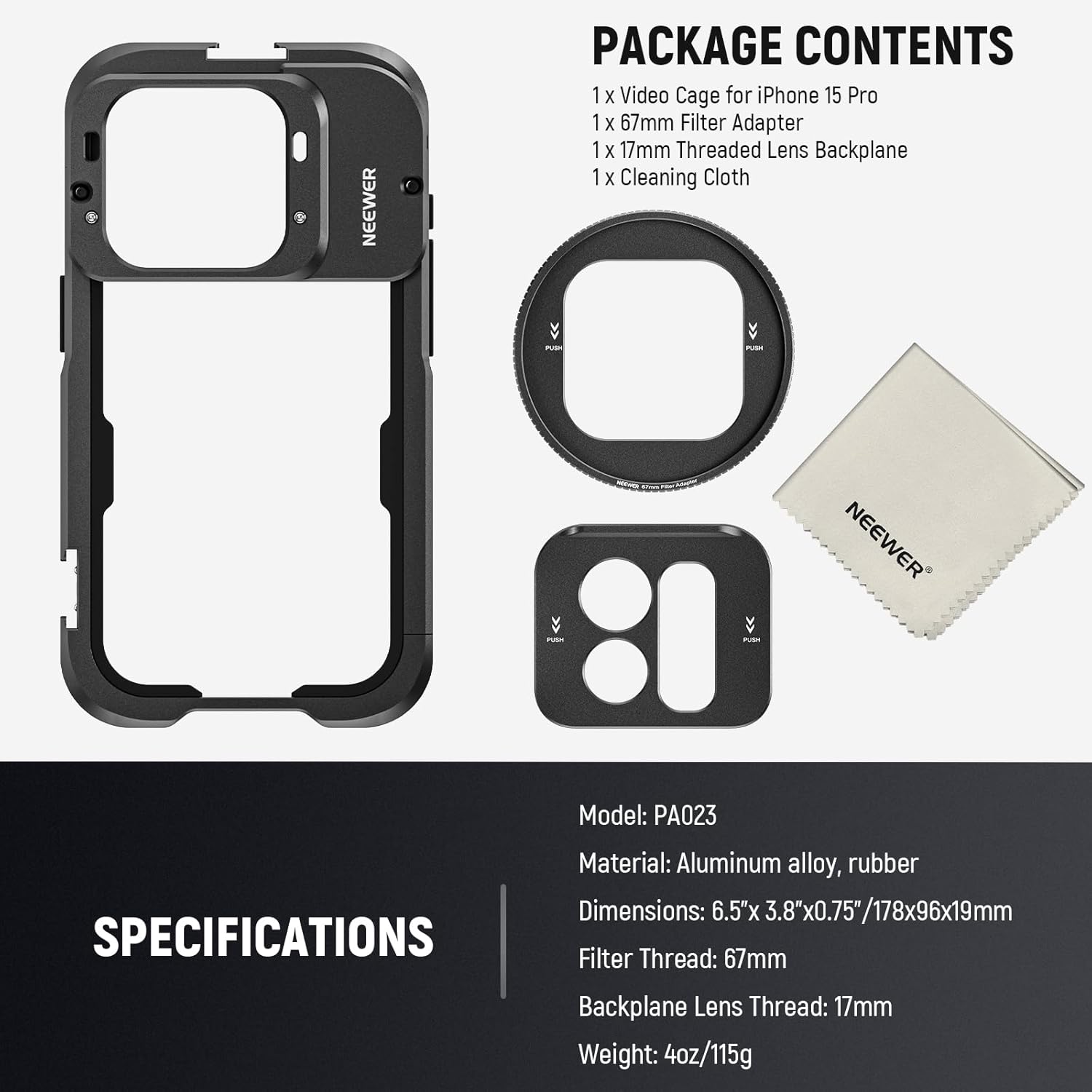 The NEEWER 15 Pro Cage is a versatile video rig designed to enhance your smartphone filmmaking experience. With multiple mounting points, filter adapters, and robust construction, this cage provides the stability and expandability needed for professional-quality mobile video recording.