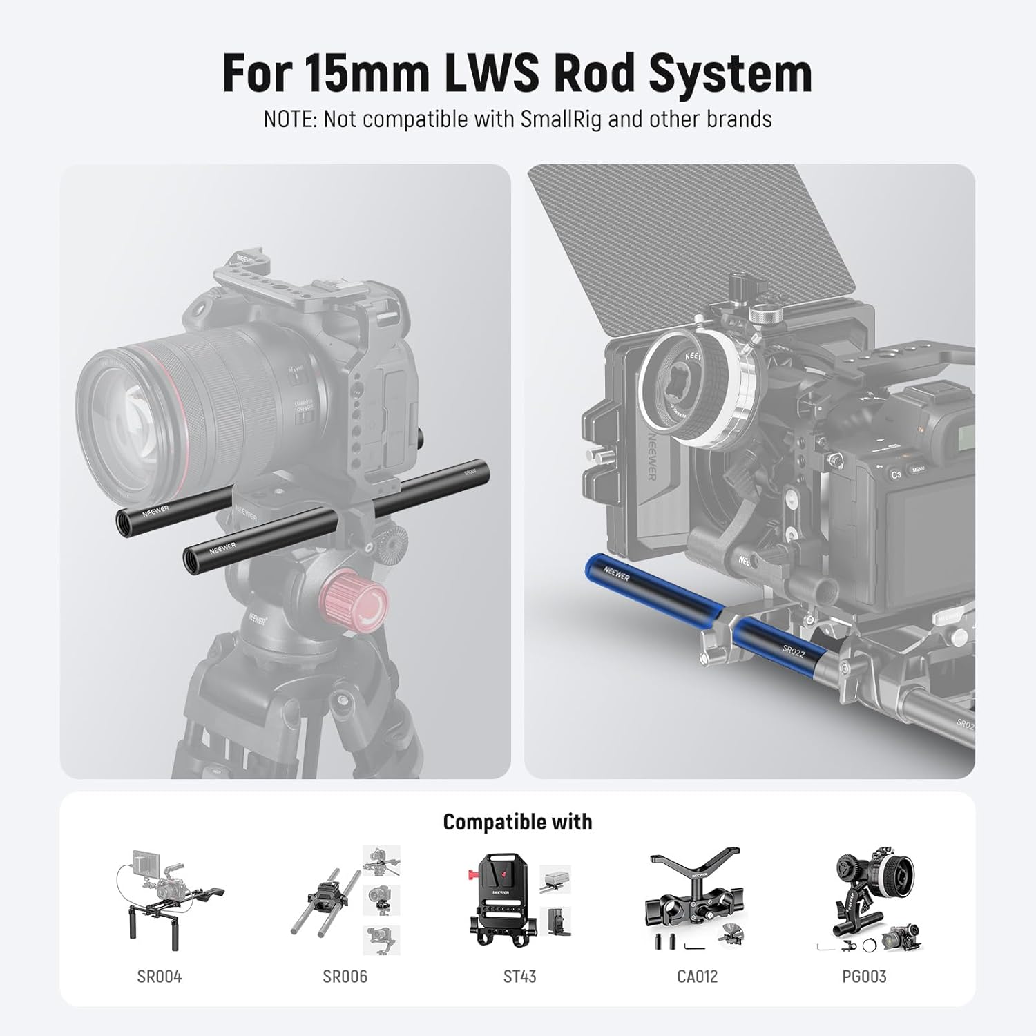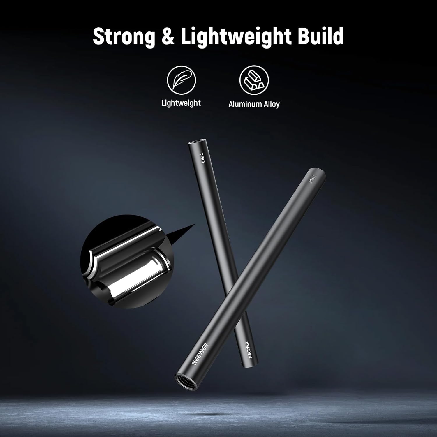 The NEEWER 15mm Rods provide a sturdy and versatile foundation for your camera rig. Constructed from high-quality aluminum alloy, these extendable rods are perfect for supporting various accessories in your filmmaking setup.