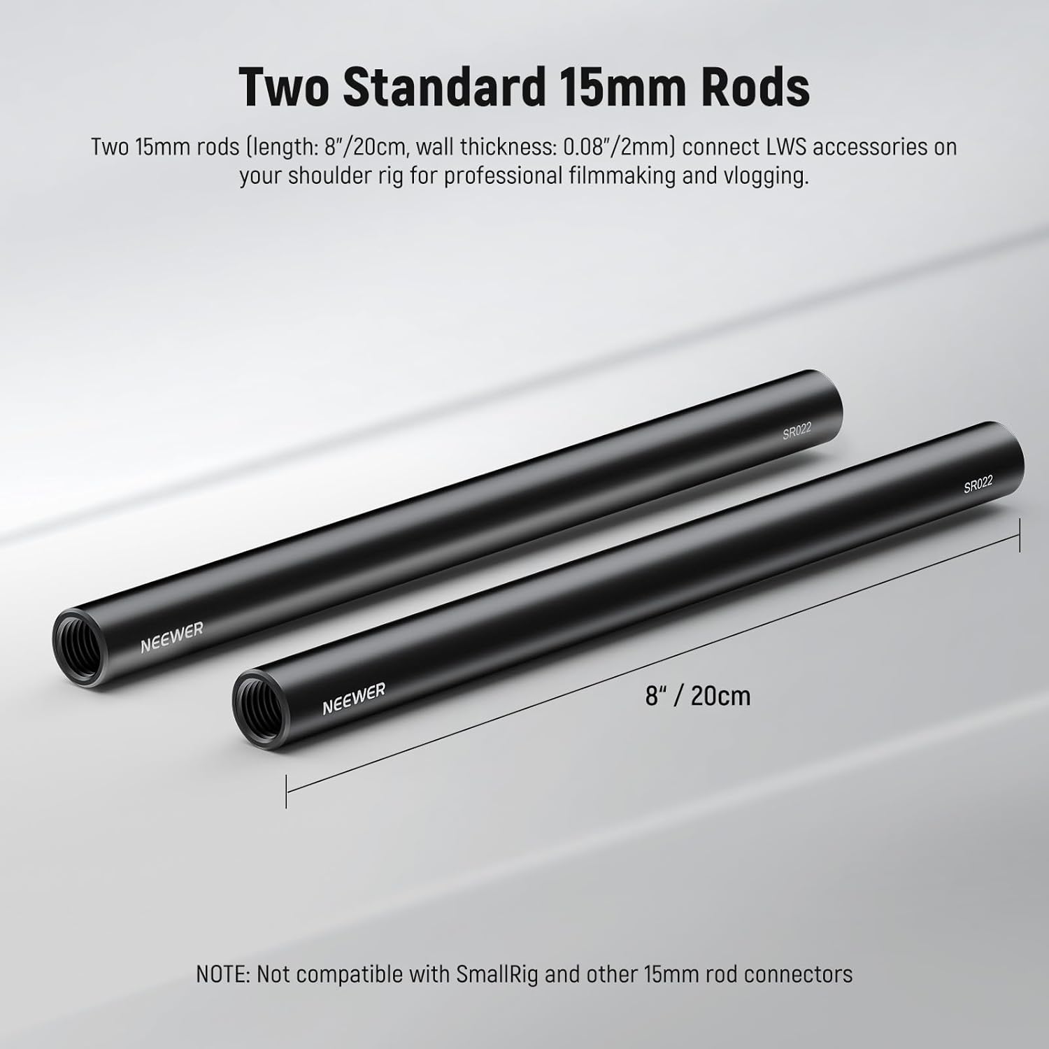 Neewer 10104675 15mm Rods - 8-inch Extension - 2-Pack