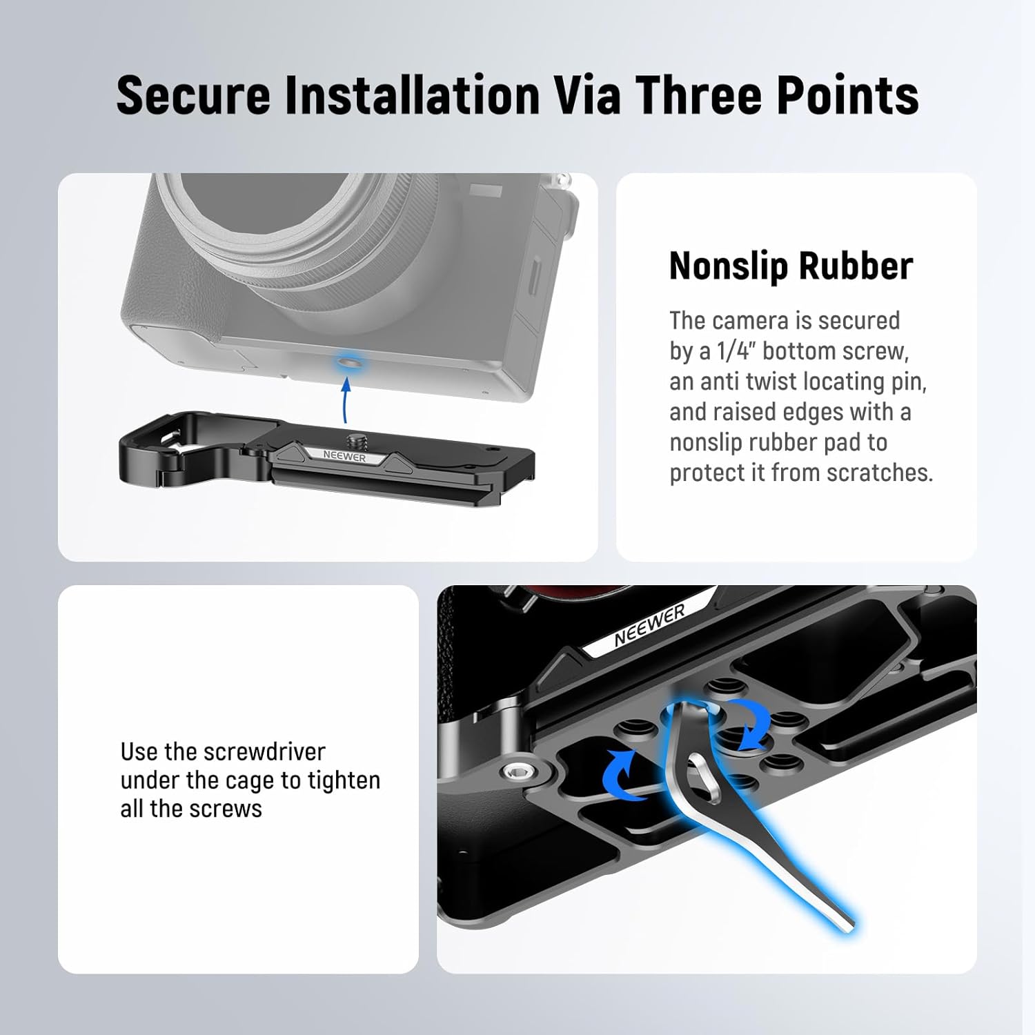 The NEEWER Baseplate for α7C II/α7CR cameras offers a stable and versatile mounting solution. Designed with a form-fitting Arca-Type design, this baseplate ensures secure attachment and seamless integration with tripods, gimbals, and other accessories.