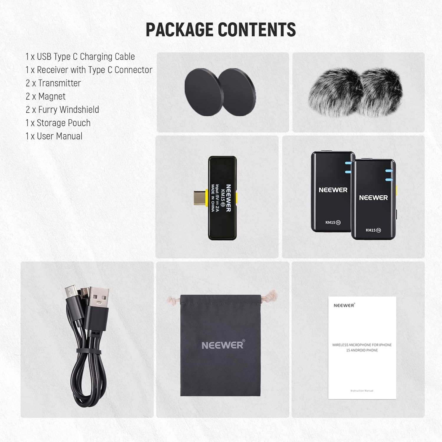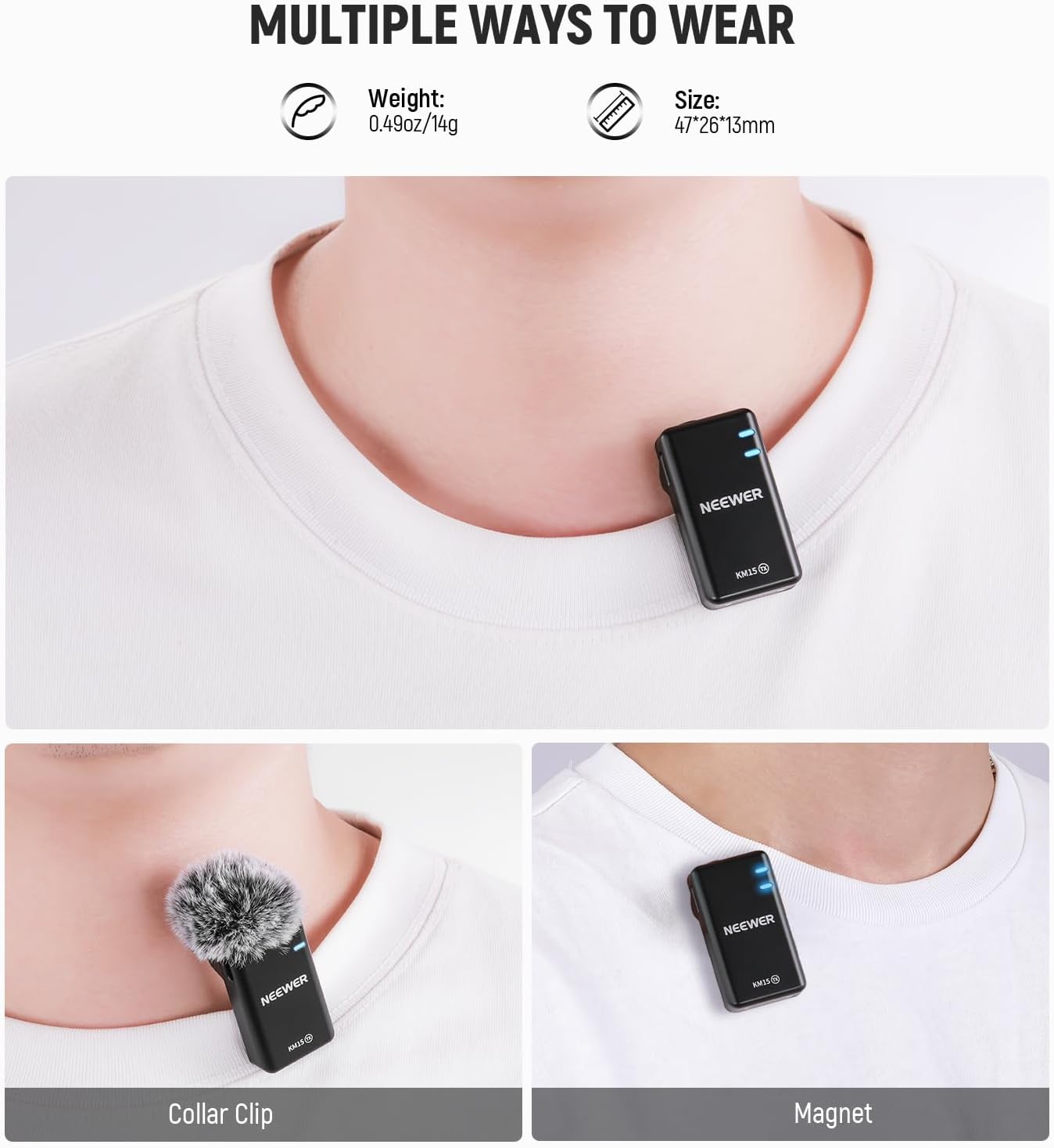 The NEEWER KM15 Wireless Microphone Set is engineered for content creators using USB-C smartphones, iPhones, and iPads. This lavalier mic system delivers exceptional audio quality with noise cancellation, making it perfect for video recording, live streaming, and podcasting.