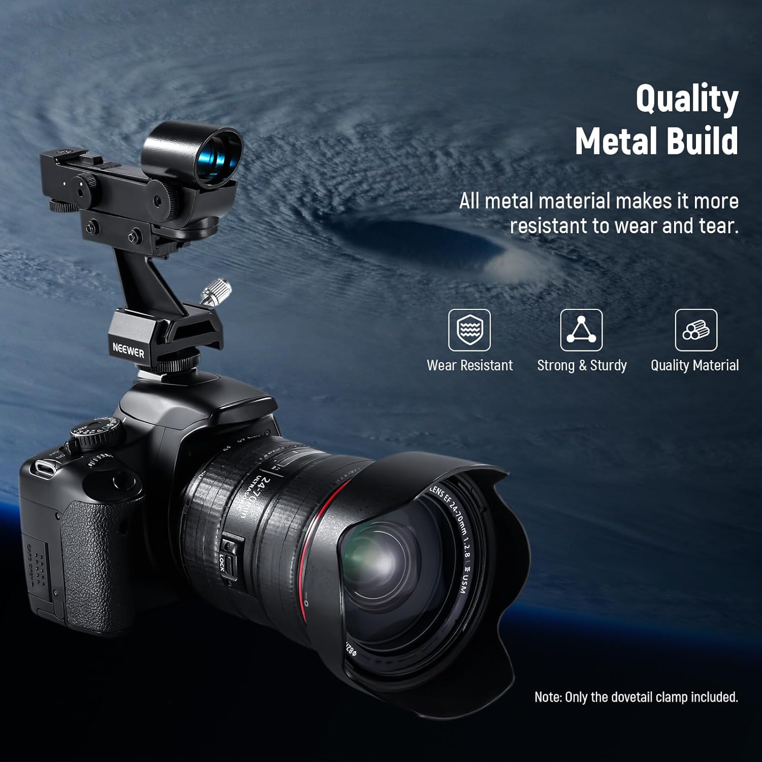 The NEEWER Telescope Finderscope Mount Adapter LS-T16 is crafted for astrophotography enthusiasts. This all-metal adapter allows for secure and versatile mounting of finderscopes and other accessories to your telescope or camera, ensuring accurate target acquisition and stable performance.