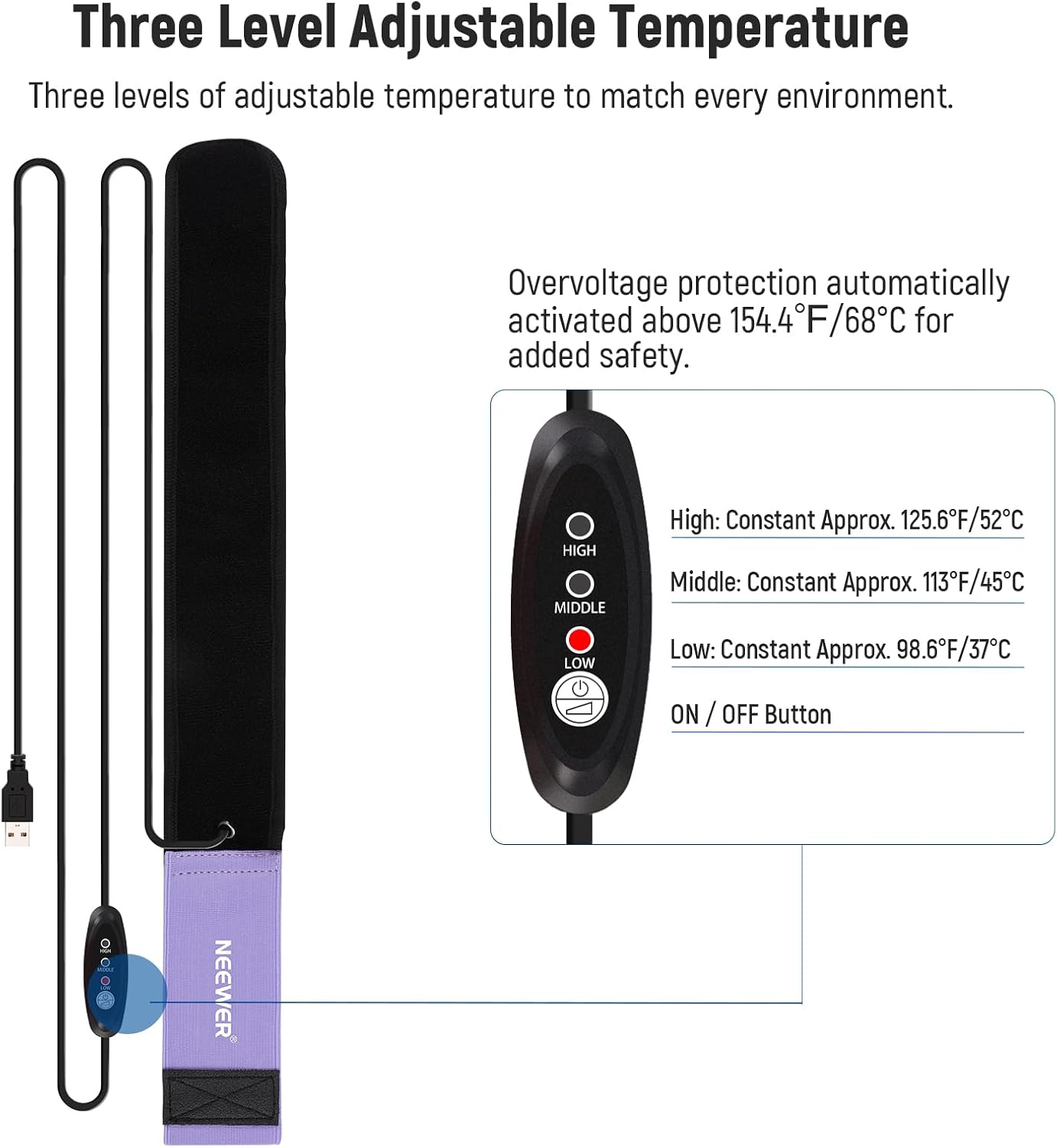 Keep your camera lens or telescope clear in cold and humid conditions with the NEEWER USB Lens Heater. Featuring FPC fast even heating technology and three adjustable temperature levels, this lens warmer prevents dew, fog, and condensation, ensuring crisp and clear images. Safe and easy to use with USB power.