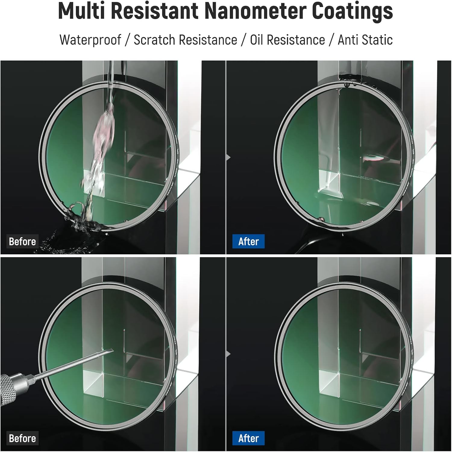 Elevate your photography with the NEEWER 55mm CPL UV Lens Filter Kit. This kit includes a Circular Polarizer (CPL) and a UV Protection filter, both crafted with HD optical glass and featuring 30-layer nano coatings for exceptional image quality and durability.