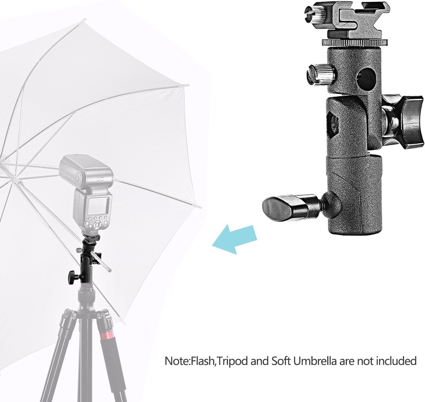 - Features: Light Stand Mount with Umbrella Holder, 180° Vertical and 360° Horizontal Adjustment