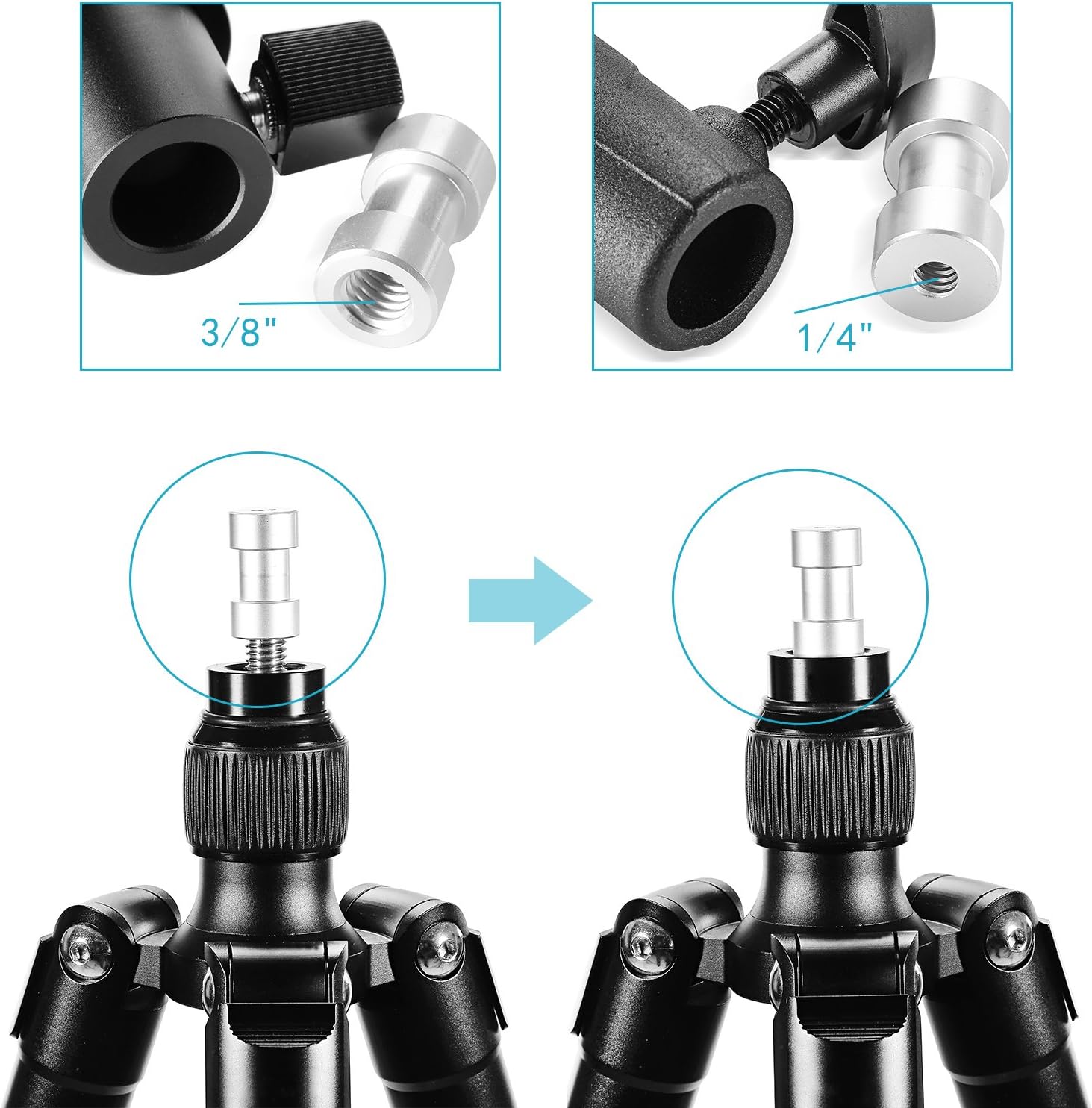 - Mounting: 1/4 inch to 3/8 inch Screw Adapter