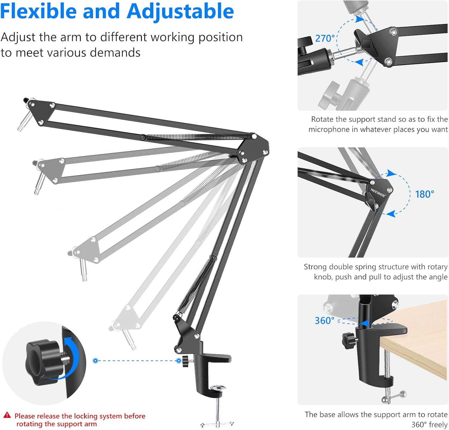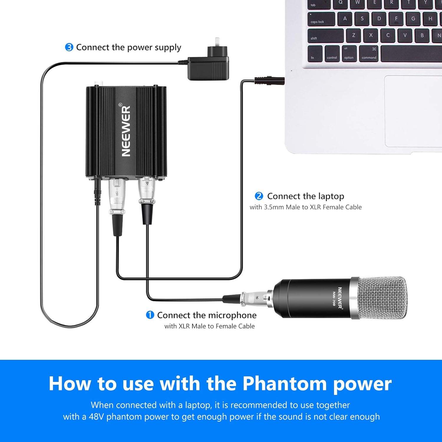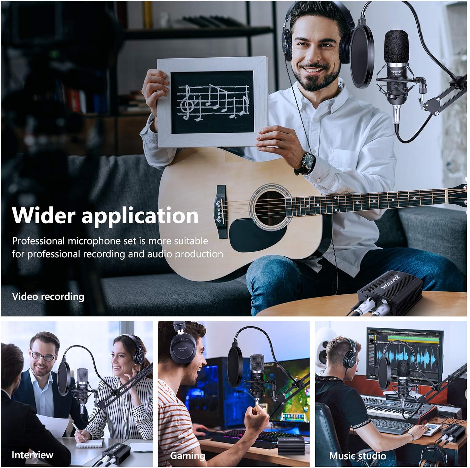 The Neewer NW-700 Pro Condenser Microphone Kit provides everything you need for high-quality sound recording in your home studio. Including a condenser microphone, monitor headphones, a 48V phantom power supply, and a boom scissor arm stand, this kit provides the basic components to begin your recording hobby or career.