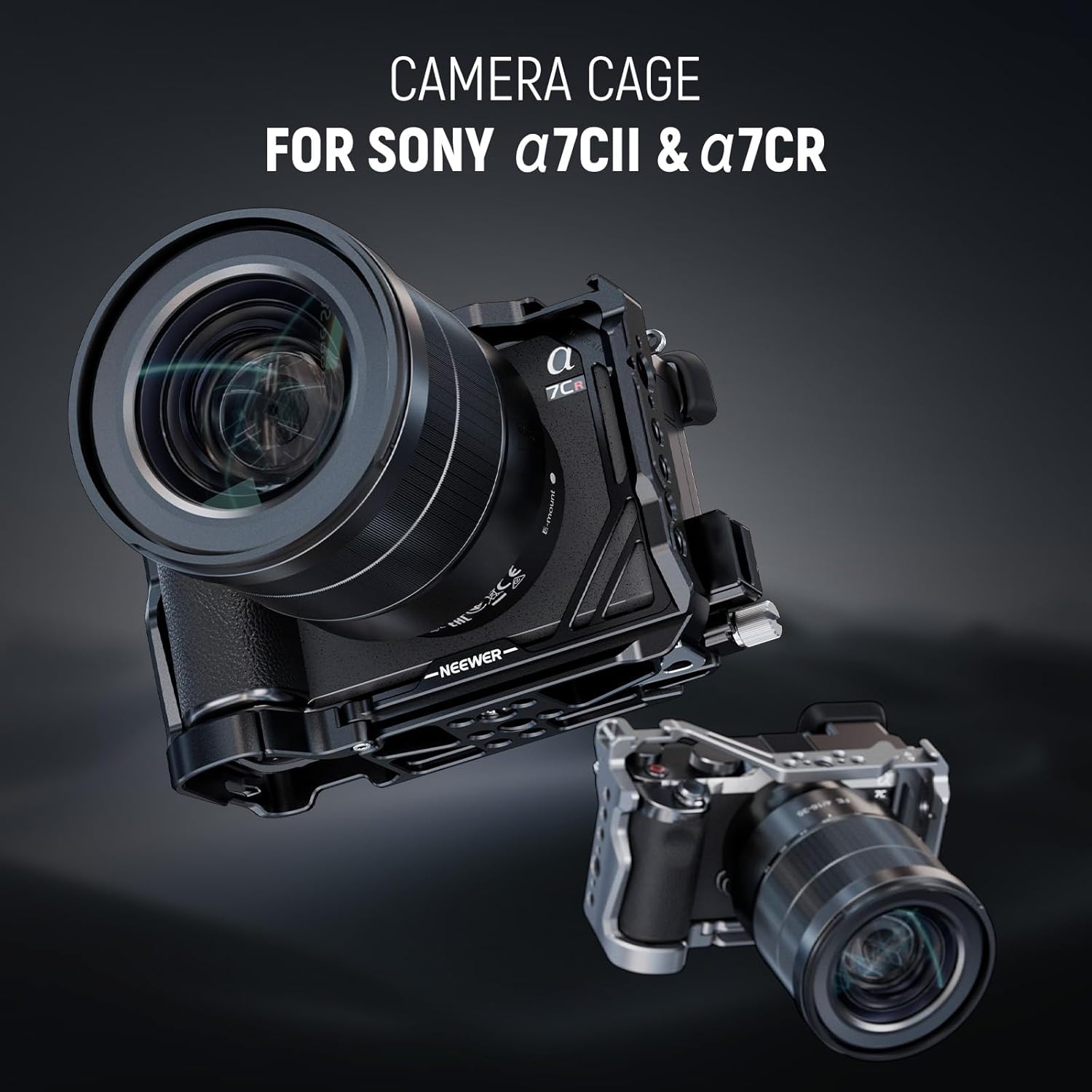 The NEEWER A7C II A7CR Camera Cage is an aluminum video rig designed to provide secure mounting and accessory options for Sony Alpha 7C II and Alpha 7CR cameras. With multiple mounting points and a quick-release base, it's perfect for filmmakers and content creators.