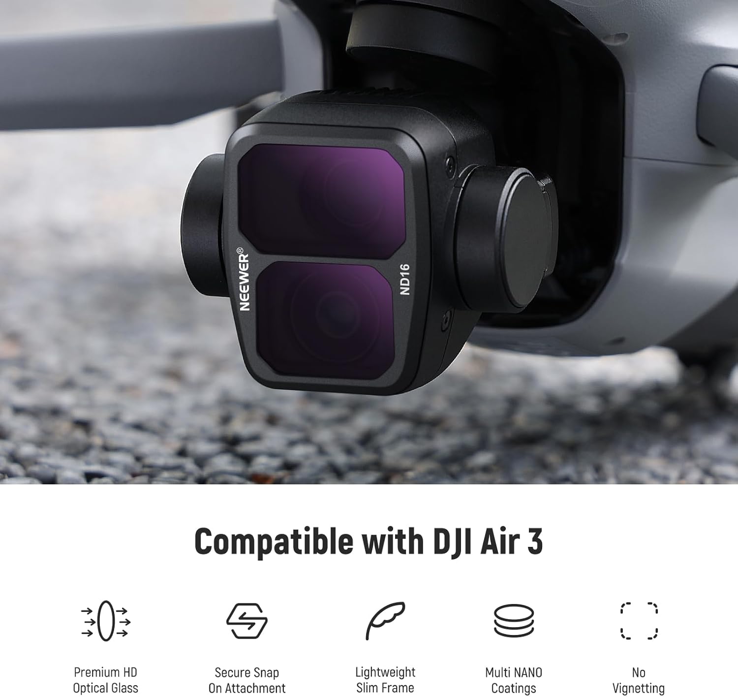 The NEEWER ND CPL UV Filter Set is designed for the DJI Air 3 drone, providing essential tools for capturing stunning aerial photos and videos. This 6-pack includes ND, CPL, and UV filters, allowing you to fine-tune shutter speeds, reduce glare, and enhance colors in various lighting conditions.