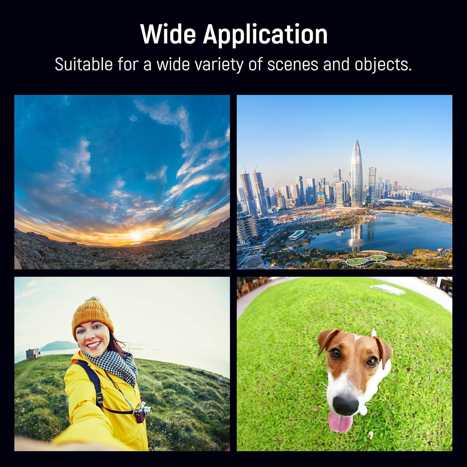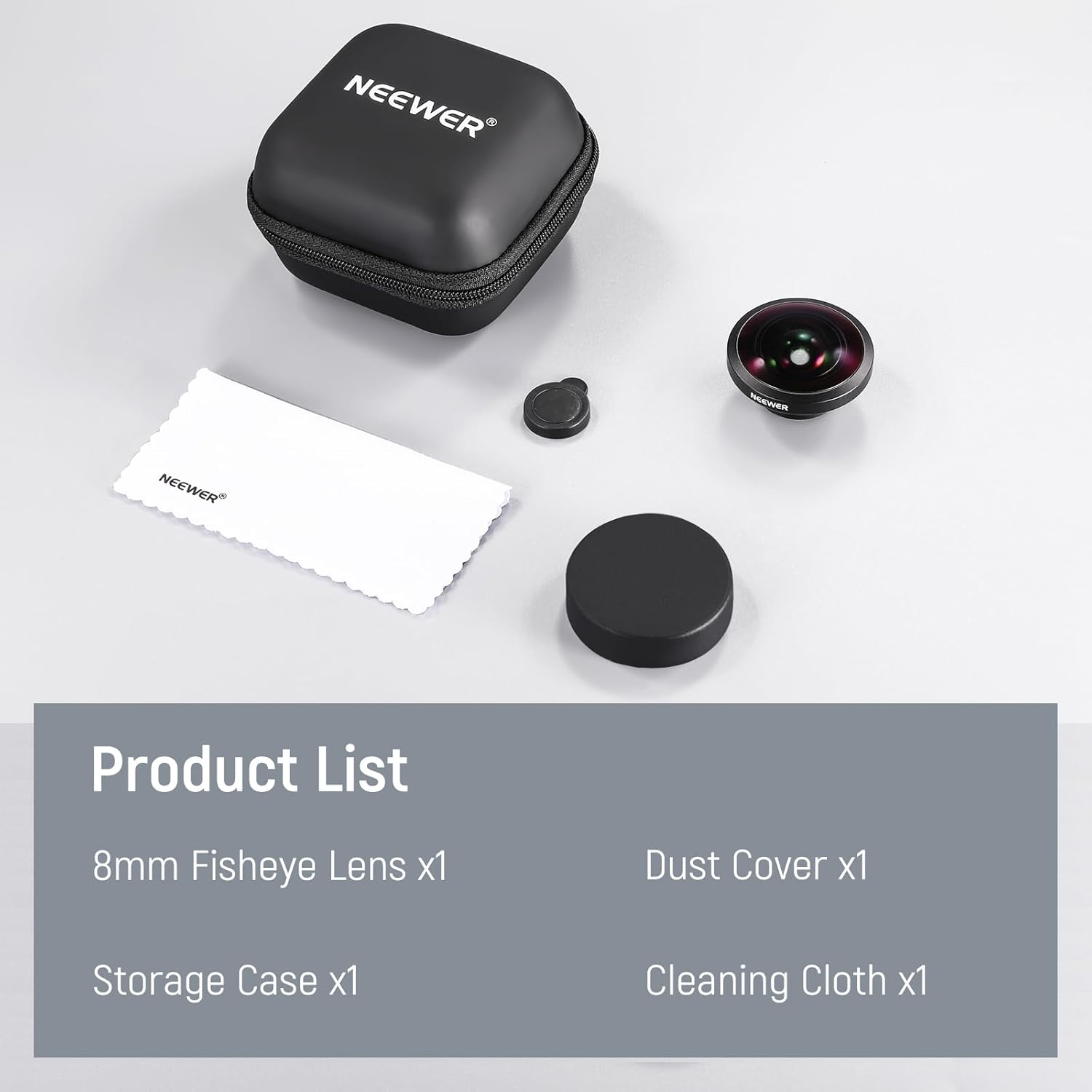 The Neewer HD 8mm Fisheye Phone Lens brings a unique, ultra-wide perspective to your mobile photography. Designed for use with phone cases featuring a 17mm threaded lens backplate, this lens allows you to capture expansive landscapes, creative portraits, and dynamic action shots with a dramatic fisheye effect.