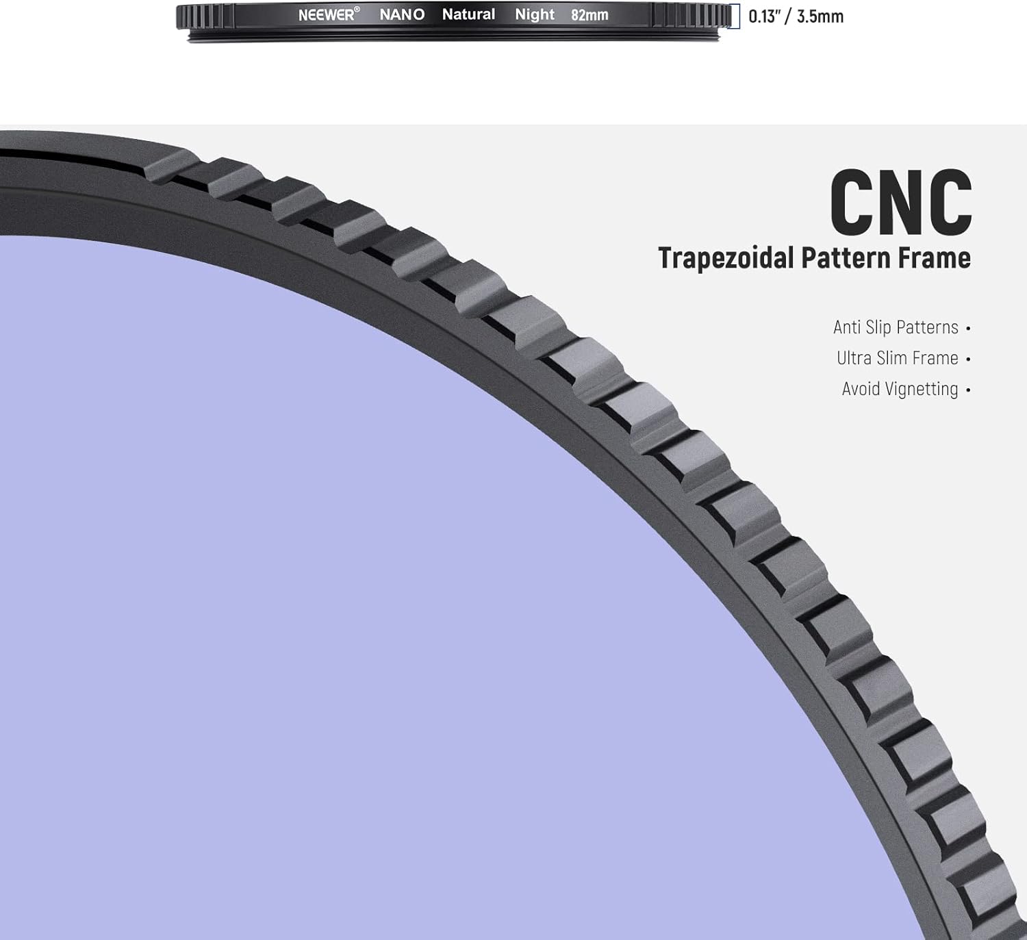 Introducing the Neewer 82mm Natural Night Filter, expertly engineered to reduce light pollution and enhance your nighttime photography. Crafted with HD Neodymium Glass and featuring multi-layer coatings, this filter delivers crystal-clear images with no color cast, making it perfect for capturing stunning cityscapes and celestial events.