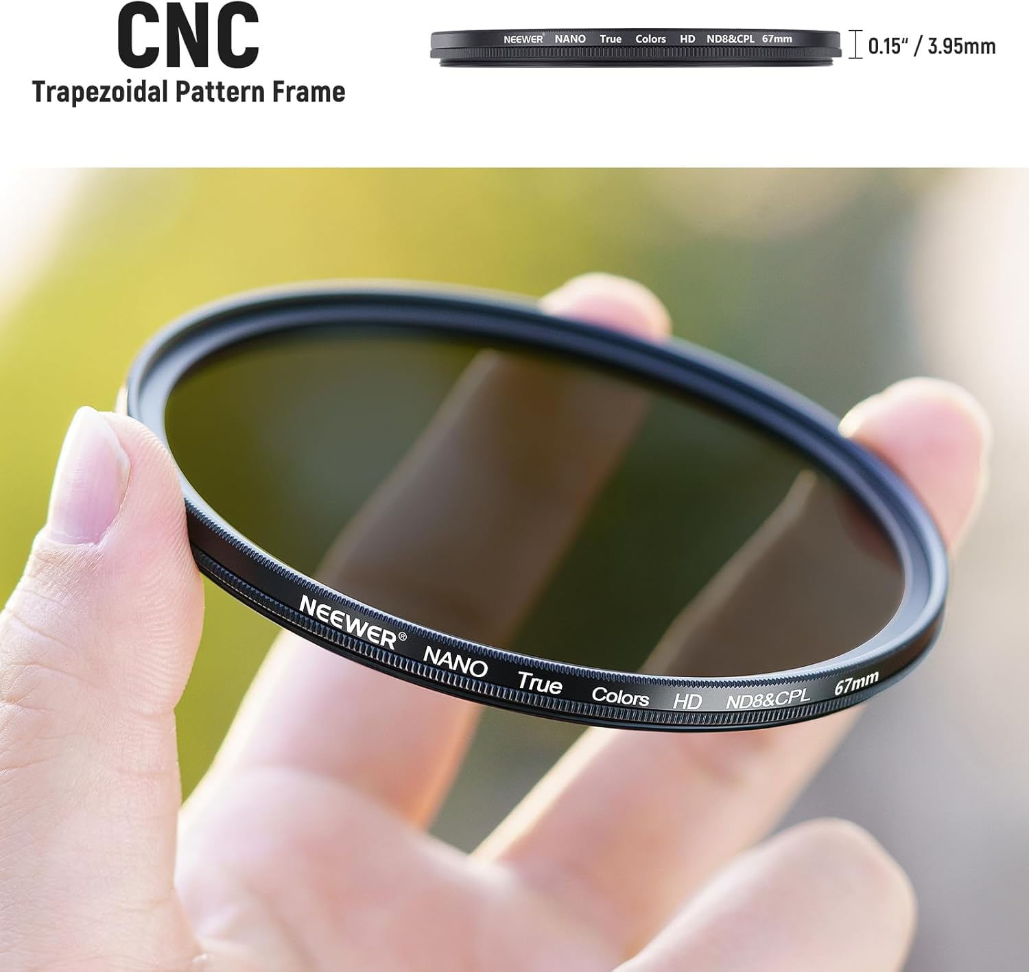 Neewer NW-S SERIES 67mm CPL ND8 Filter: True Color, Nano Coated