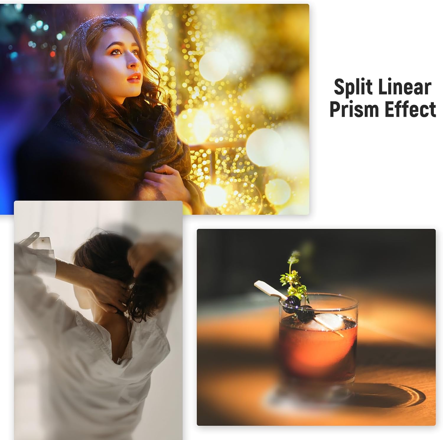 The NEEWER 67mm Center Field Split Diopter Effect Filter is a versatile lens accessory that allows you to create captivating depth of field blur and refraction effects. Made from high-quality K9 optical glass and featuring a rotating design, this filter offers exceptional transparency and control over your images.