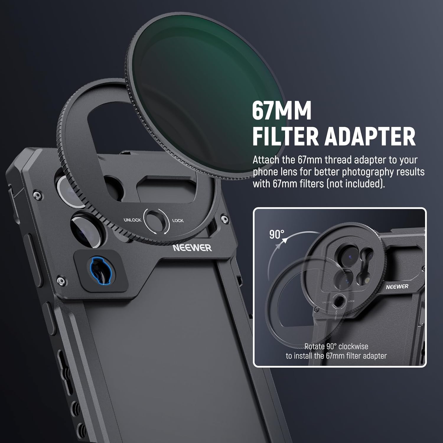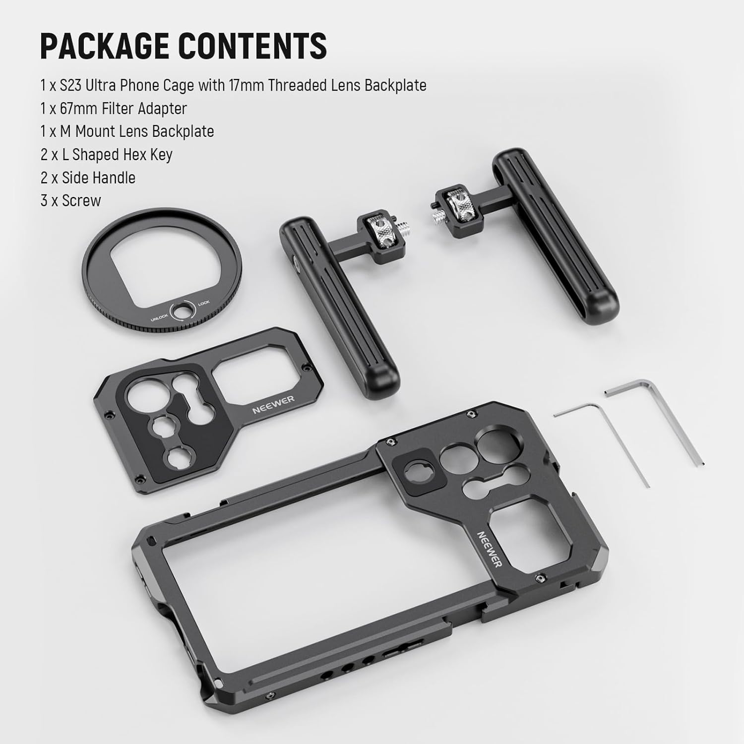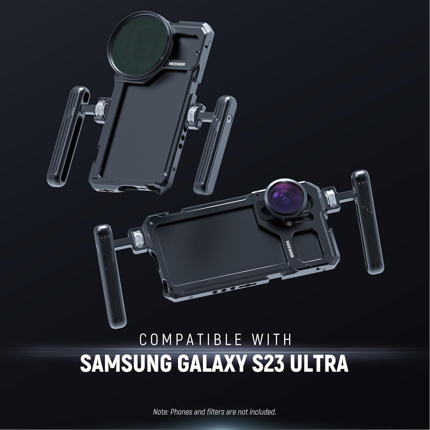 The NEEWER Galaxy S23 Ultra Phone Cage Video Rig is designed to transform your smartphone into a professional filmmaking tool. With dual side handles for stable handheld shooting, a 67mm filter adapter, and interchangeable lens backplates, this rig offers unmatched versatility for mobile video creation.