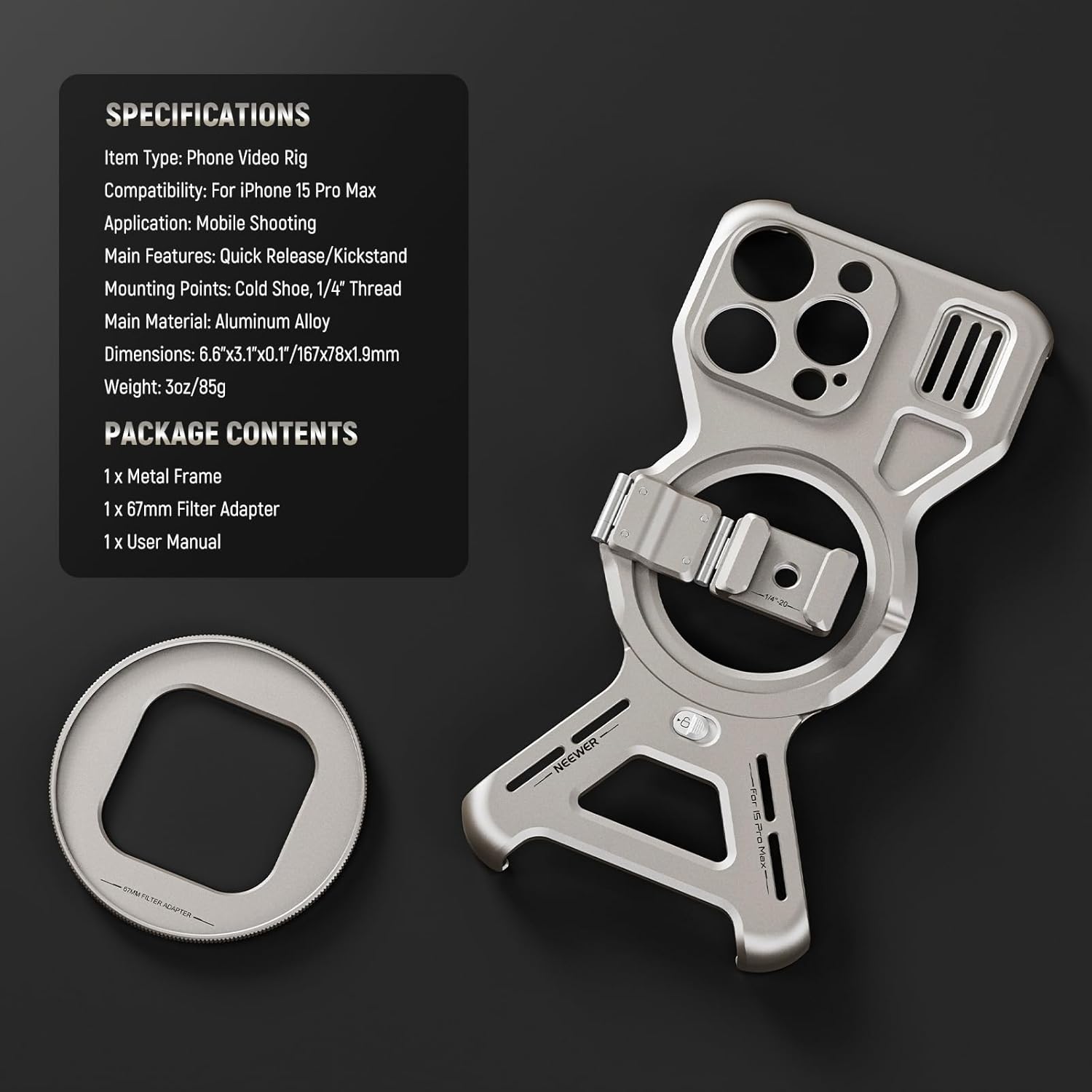 Neewer PA068 LiteArmor Metal Frame Case - iPhone 15 Pro Max
