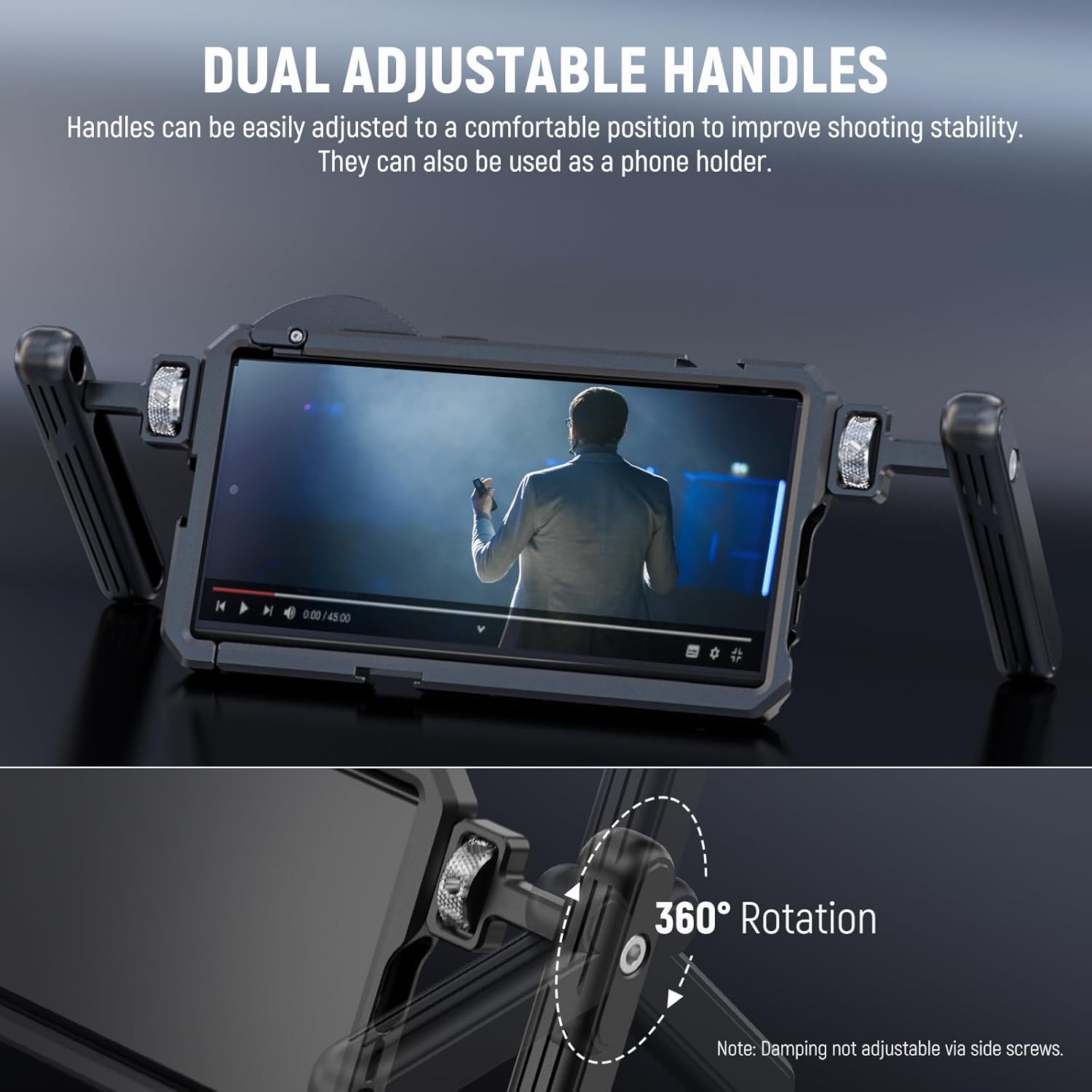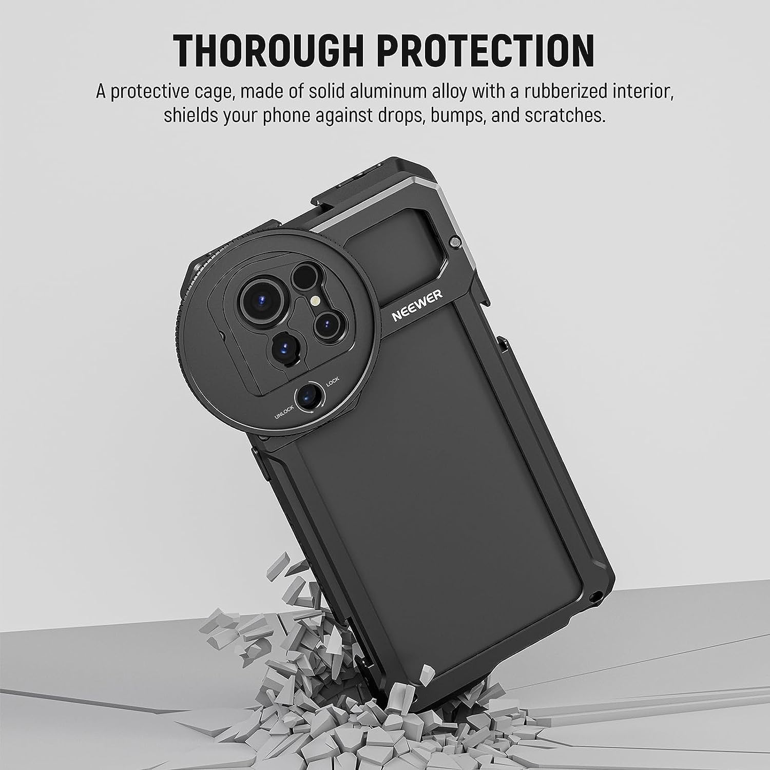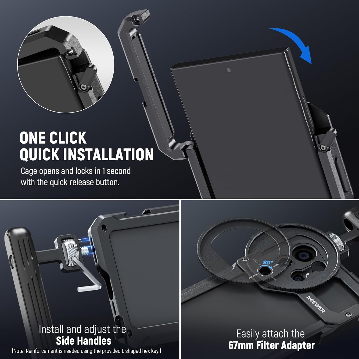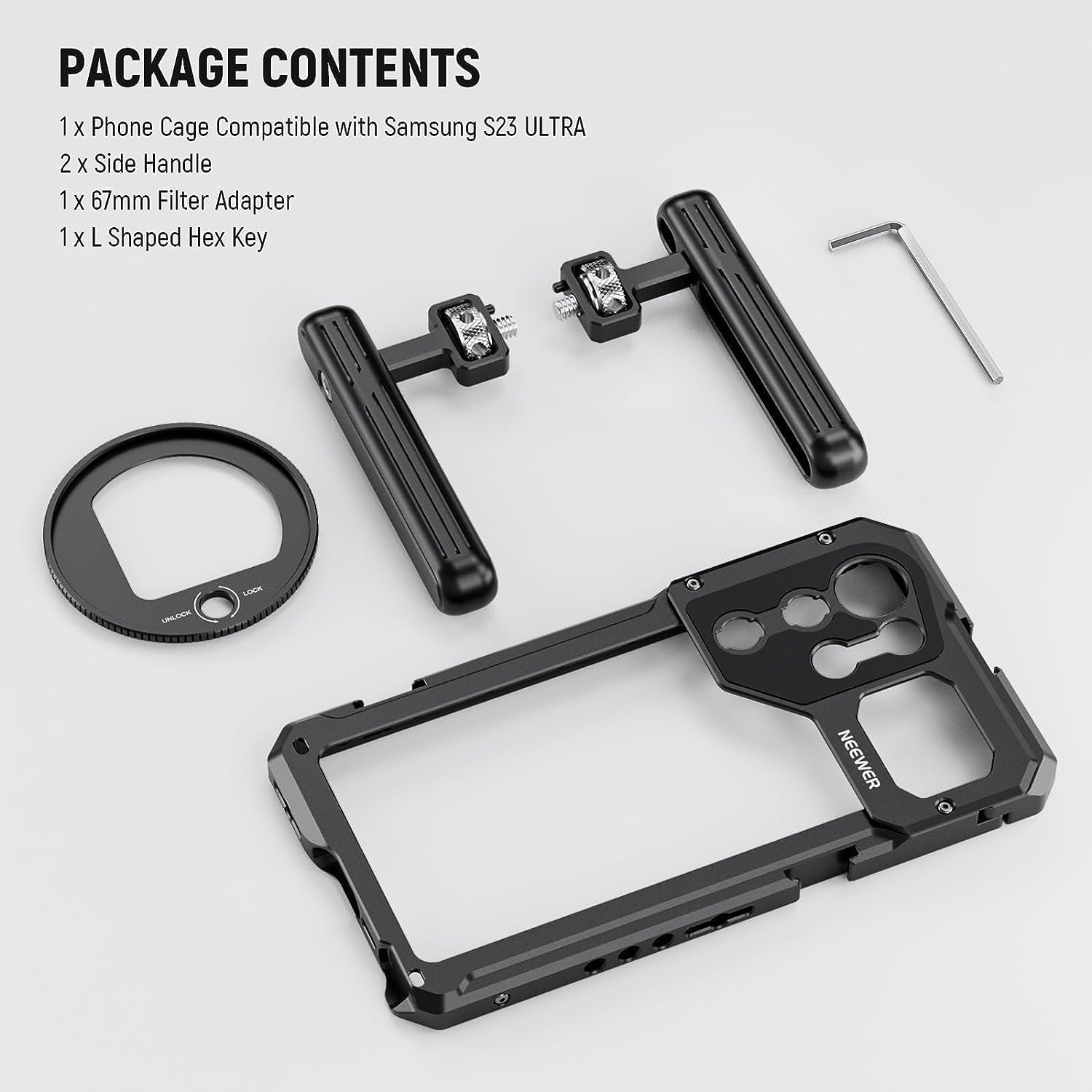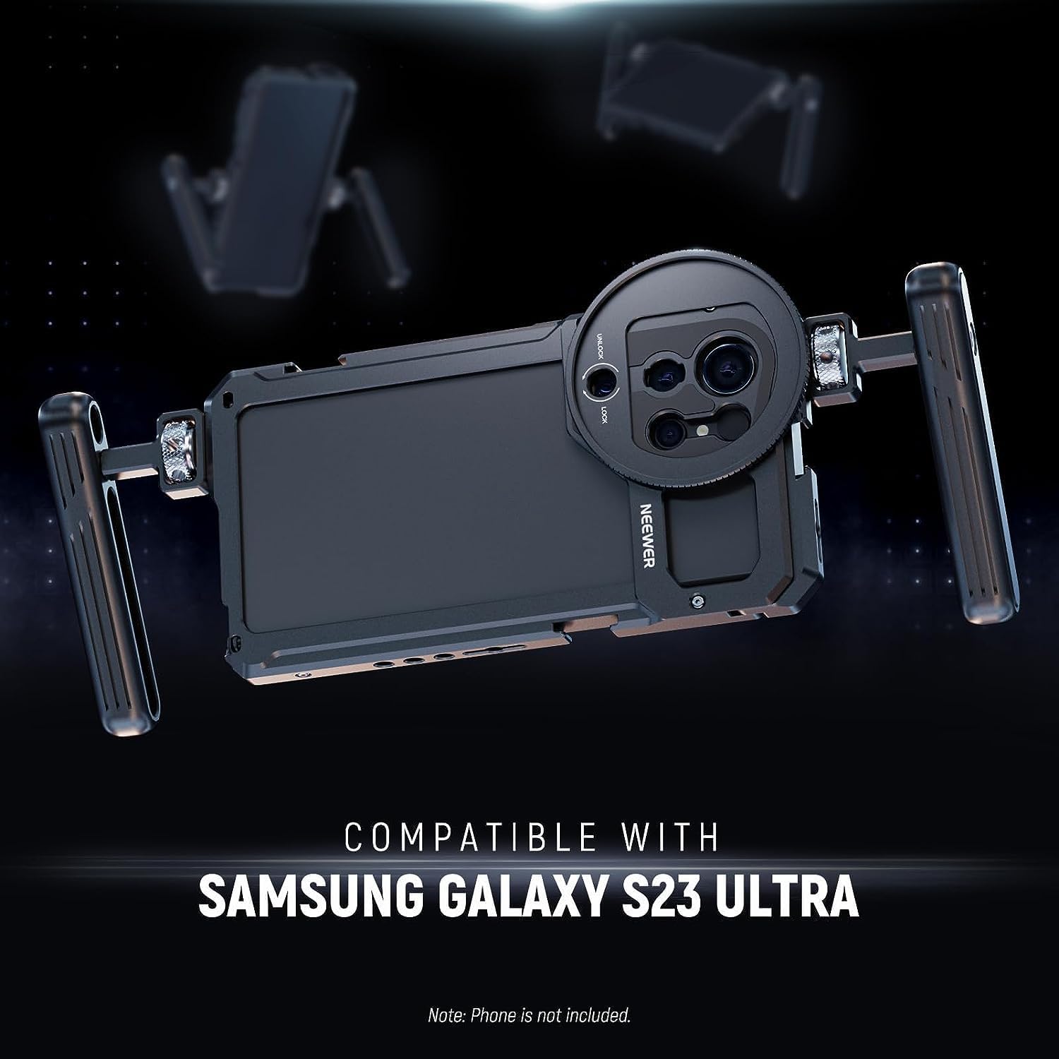 Introducing the NEEWER S23 Ultra Cage Video Rig, designed to enhance your mobile filmmaking capabilities. This all-metal cage provides superior protection for your phone while offering multiple mounting points for accessories, ensuring you capture stable, high-quality video with ease.