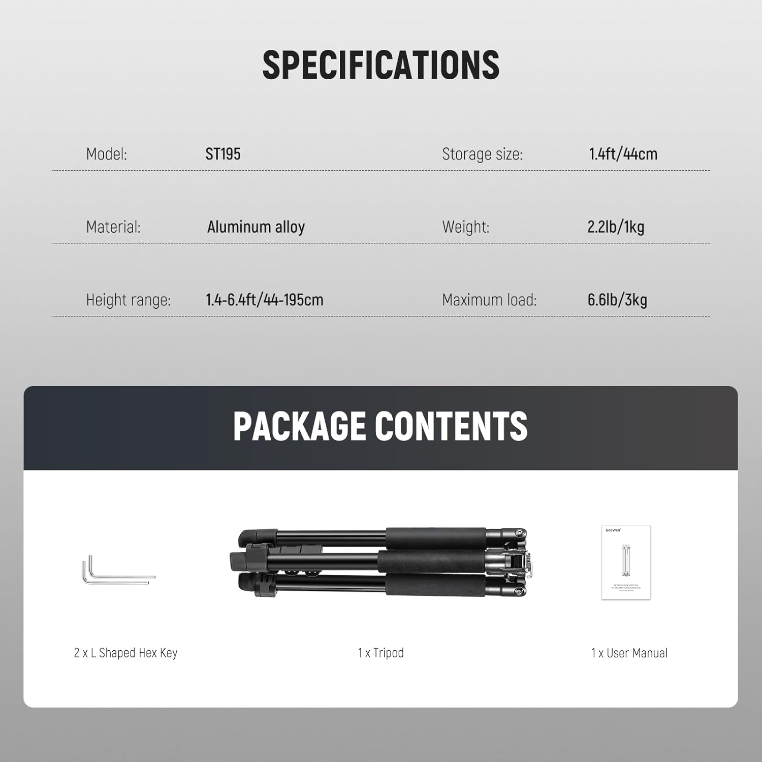 The NEEWER Photography Light Stand ST195 is a versatile and durable support for your studio lighting equipment. With its adjustable height and stable tripod base, it's ideal for photographers and videographers in various shooting environments.