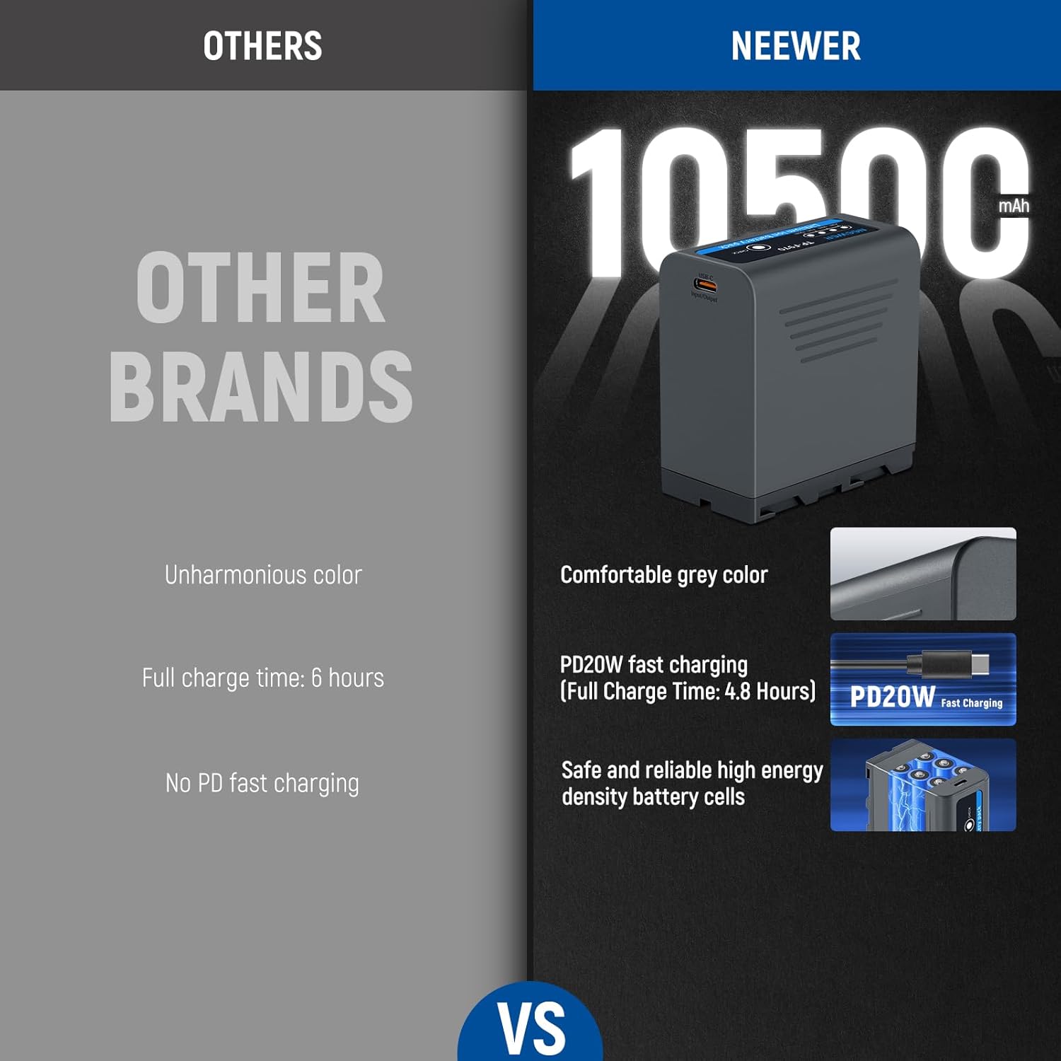 Introducing the Neewer 10500mAh NP-F970 Replacement Battery, a high-capacity power solution designed to keep your cameras, camcorders, and LED lights running longer. With fast charging capabilities and multiple protection features, this battery ensures reliable performance for all your creative projects.