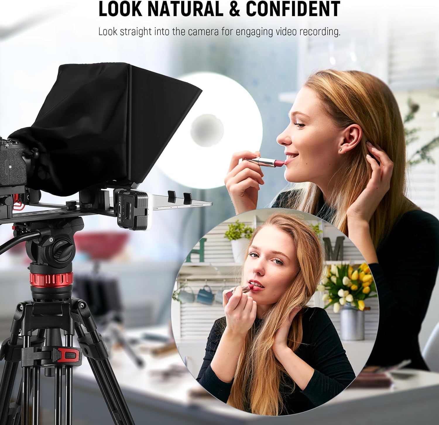 The NEEWER Teleprompter X14 II offers a seamless and efficient solution for video recording. This 14" teleprompter is designed for ease of use and portability, with an upgraded height-adjustable camera mount and compatibility with various mobile devices. Perfect for presentations, online courses, and broadcasting.