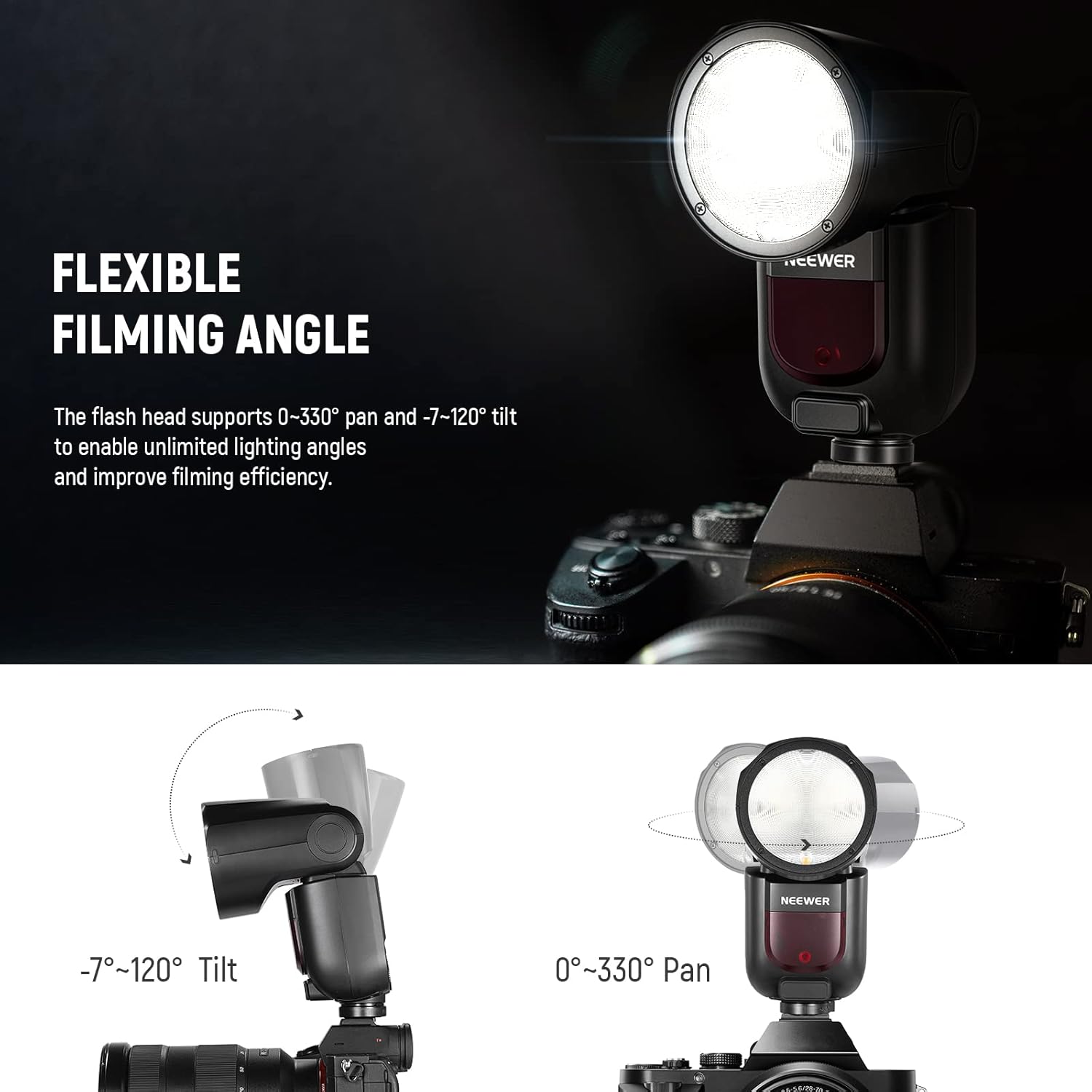 - Flash Head Movement: 0-330° Pan, -7°-120° Tilt