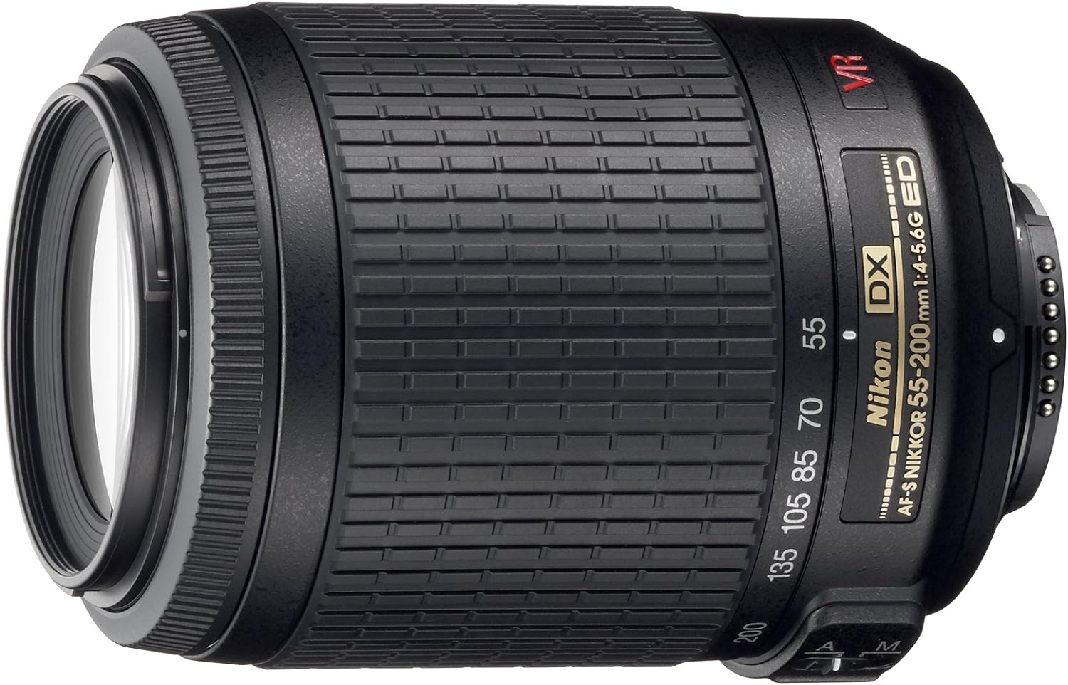 The Nikon 55-200mm f/4-5.6G ED-IF AF-S DX VR Zoom-Nikkor Lens is a versatile telephoto zoom lens designed for Nikon DX-format digital SLR cameras. Featuring Vibration Reduction (VR) technology and Extra-low Dispersion (ED) glass, this lens delivers sharp, clear images with minimized chromatic aberration. Its Silent Wave Motor (SWM) ensures fast and quiet autofocus performance.