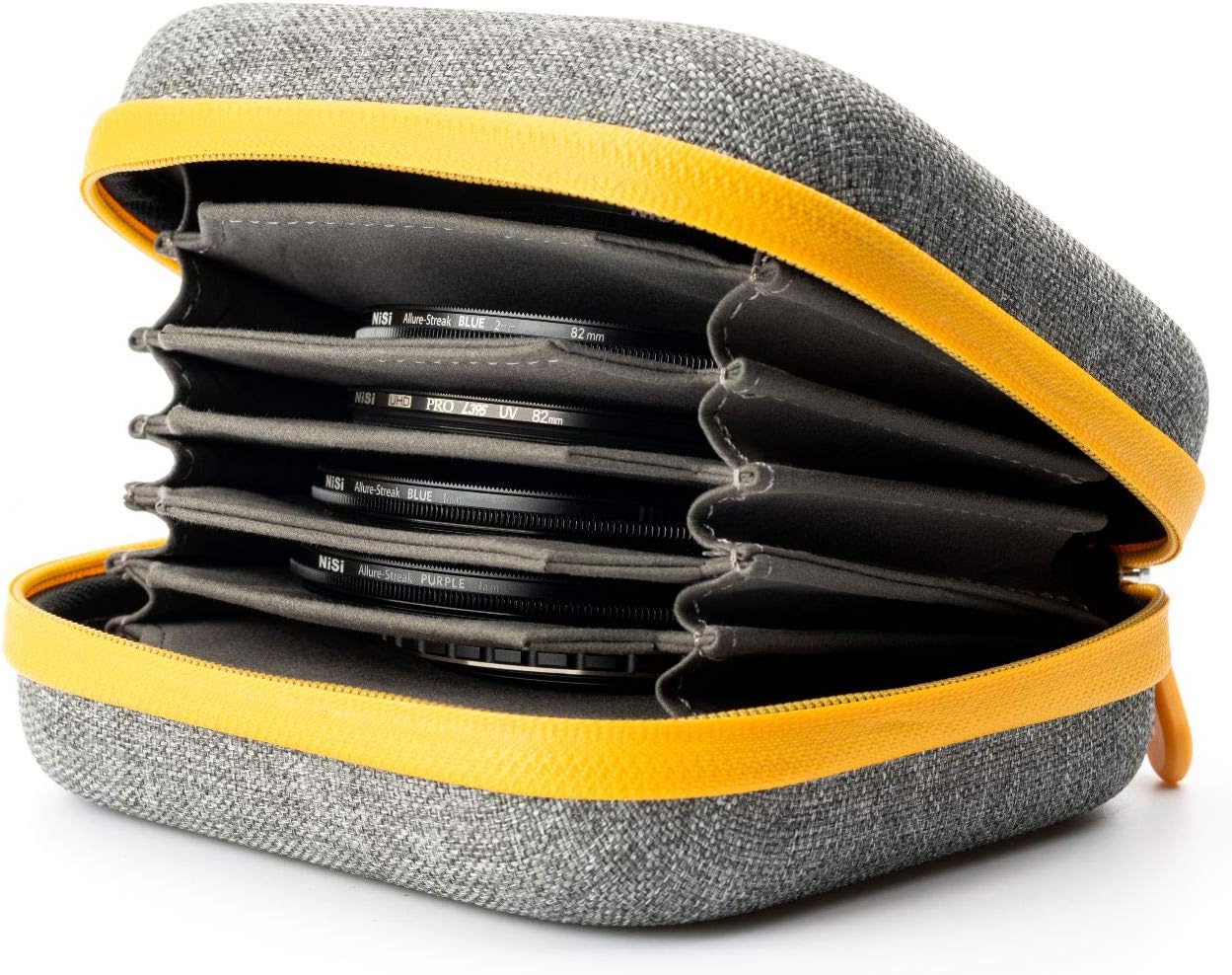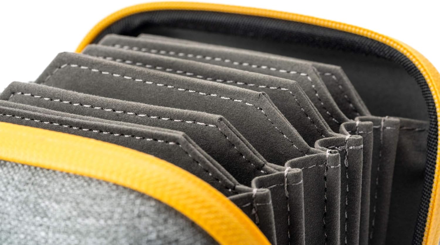 The NiSi Circular Filter Caddy Pouch is designed to protect and organize your circular filters. Made with water-repellent material and a shock-proof hard shell, this caddy ensures your filters are safe from the elements and impacts. The microfiber-lined pockets keep your filters clean and scratch-free.