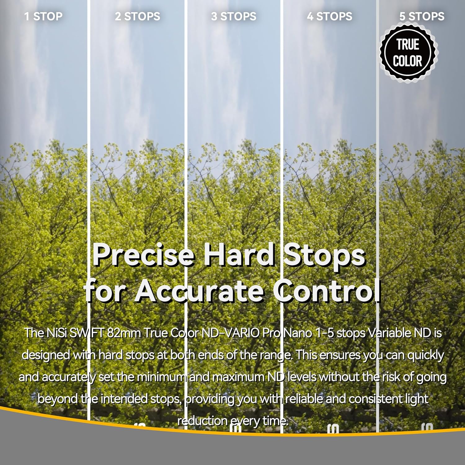 The NiSi 67mm Swift True Color ND-Vario Filter allows you to control the amount of light entering your lens with precision, offering adjustable neutral density from 1 to 5 stops. Designed for photographers and videographers, this filter maintains true color and minimizes vignetting, ensuring high-quality images in dynamic lighting conditions.