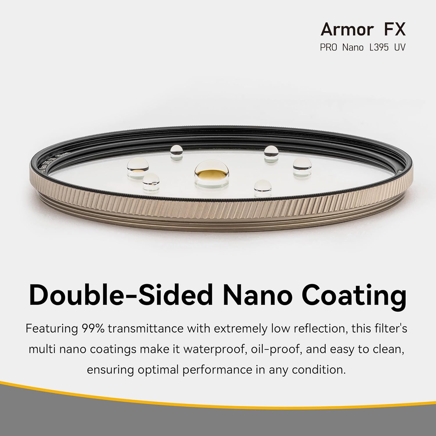 The NiSi 72mm Armor FX PRO Nano L395 UV Filter offers unparalleled lens protection without sacrificing image quality. Engineered to withstand extreme conditions, this filter is designed to endure heavy impacts, hammer blows, and even explosions, ensuring your lens remains safe in the harshest environments. The durable brass frame provides easy grip and prevents vignetting, even on wide-angle lenses.