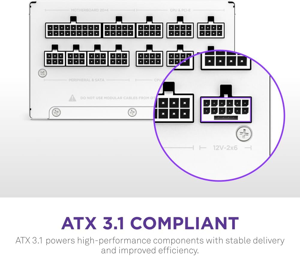 NZXT C850 Gold ATX 3.1 Low-Noise Power Supply White