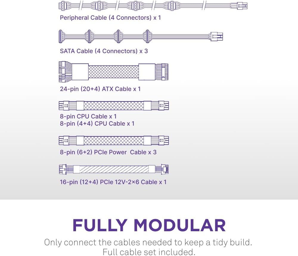- Certification: 80 PLUS Gold, Cybenetics Gold (Efficiency), Cybenetics A- (Noise Level)