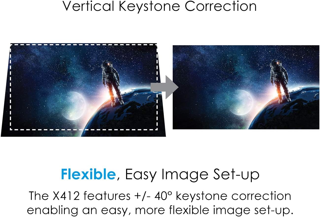 The Optoma X412 XGA DLP Professional Projector delivers bright, sharp images, making it perfect for business presentations, classrooms, and meeting rooms. With 4,200 lumens of brightness and a 50,000:1 contrast ratio, the X412 ensures clear and vivid visuals. Its 1.1x zoom, keystone correction, and RS232 control offer flexible installation options. The built-in 10-watt speaker enhances presentations with crisp audio. With a lamp life of up to 15,000 hours, the Optoma X412 provides years of reliable use with minimal maintenance.