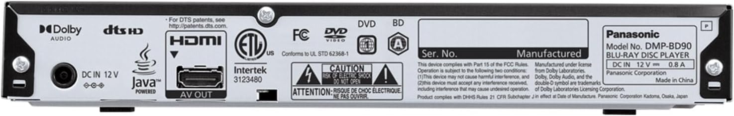 The Panasonic DMP-BD90P-K Blu-ray DVD Player delivers stunning Full HD picture quality and high-resolution Dolby Digital sound. Enjoy your favorite movies, shows, and music with crystal-clear audio and video. The compact, space-saving design ensures it fits seamlessly into any media center, while the up-conversion feature enhances standard DVDs to 1080p high-definition. Connect external devices via HDMI-CEC and USB connectors for expanded media options. Compatible with various video and audio formats, this player brings a new level of entertainment to your home.