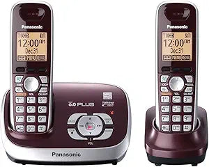 The Panasonic KX-TG6572R Cordless Phone system offers reliable communication with two handsets and an integrated answering system. This renewed phone system features Talking Caller ID, Intelligent Eco Mode, and DECT 6.0 Technology for enhanced clarity and range. The sleek Wine Red finish adds a touch of elegance to any home or office.