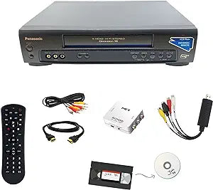 The Panasonic VCR VHS Transfer Bundle provides everything you need to playback and digitize your cherished VHS tapes. Convert your tapes to digital video files for preservation and easy sharing, or play them on modern TVs using the included HDMI converter.