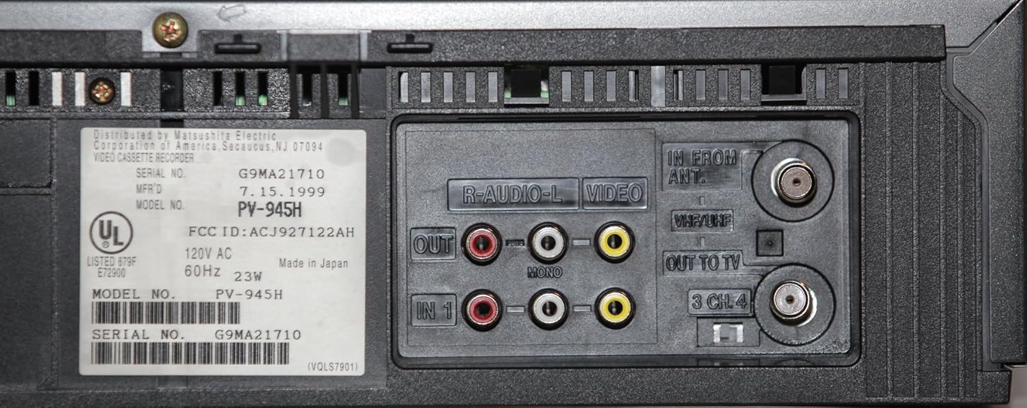 - Outputs: Audio/Video Out x1 (back), VHF/UHF Out to TV x1 (back).